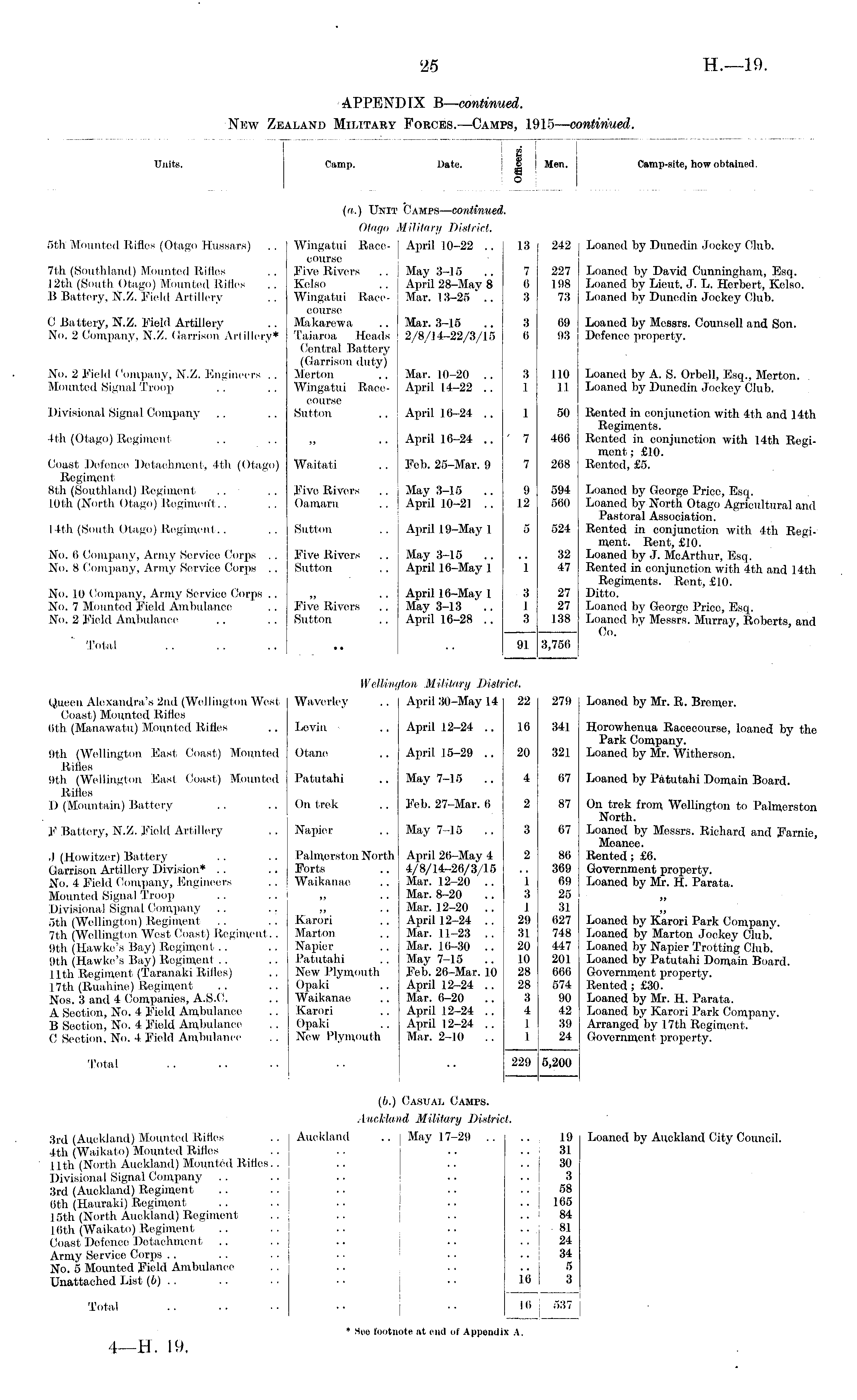APPENDIX B— continued. New Zealand Military Forces.—Camps, 1915 — continued.