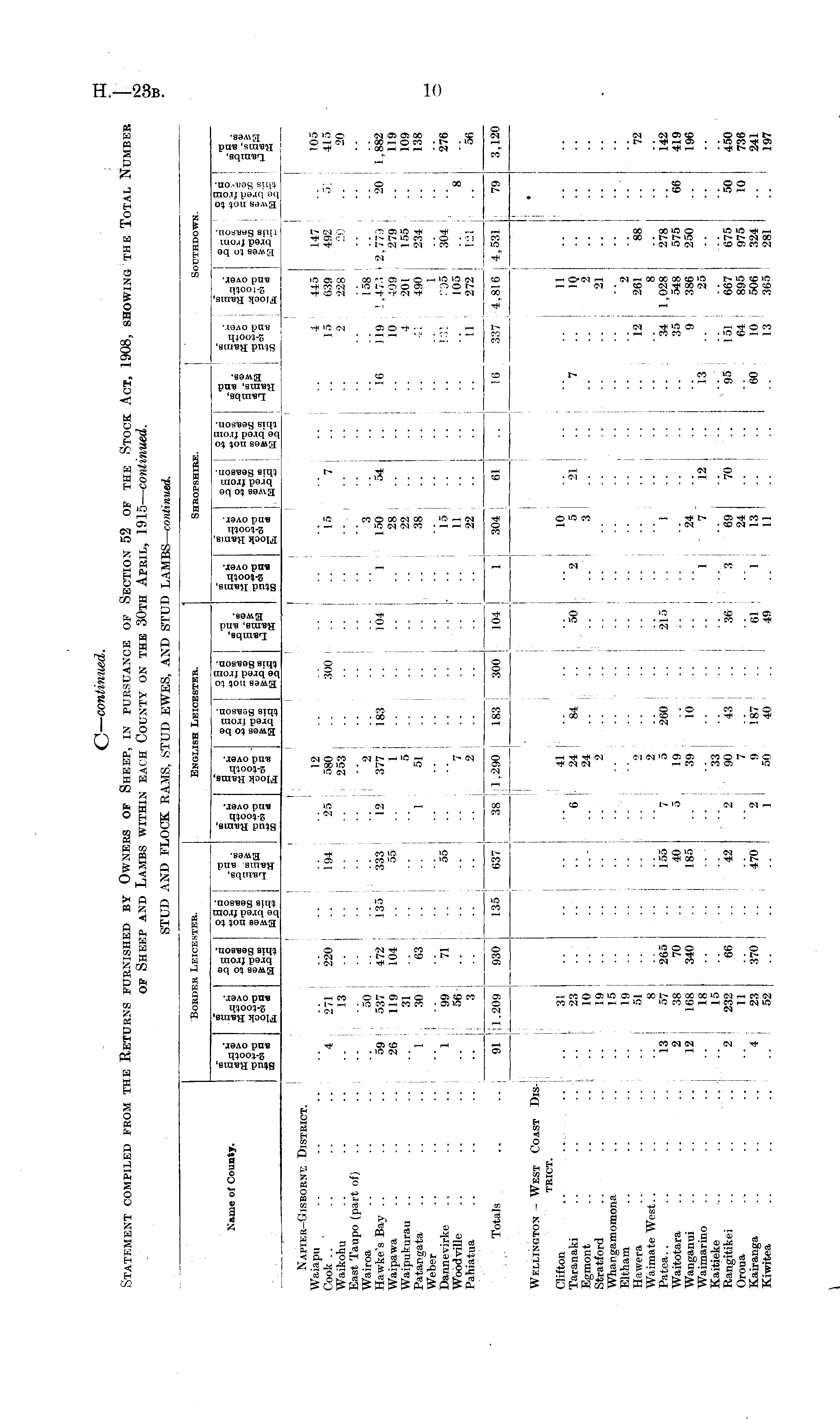 C— continued. Statement compiled from the Returns furnished by Owners of Sheep, in pursuance of Section 52 of the Stock Act, 1908, showing the Total Number of Sheep and Lambs within each County on the 30th April, 1915— continued. STUD AND FLOCK RAMS, STUD EWES, AND STUD LAMBS— continued.