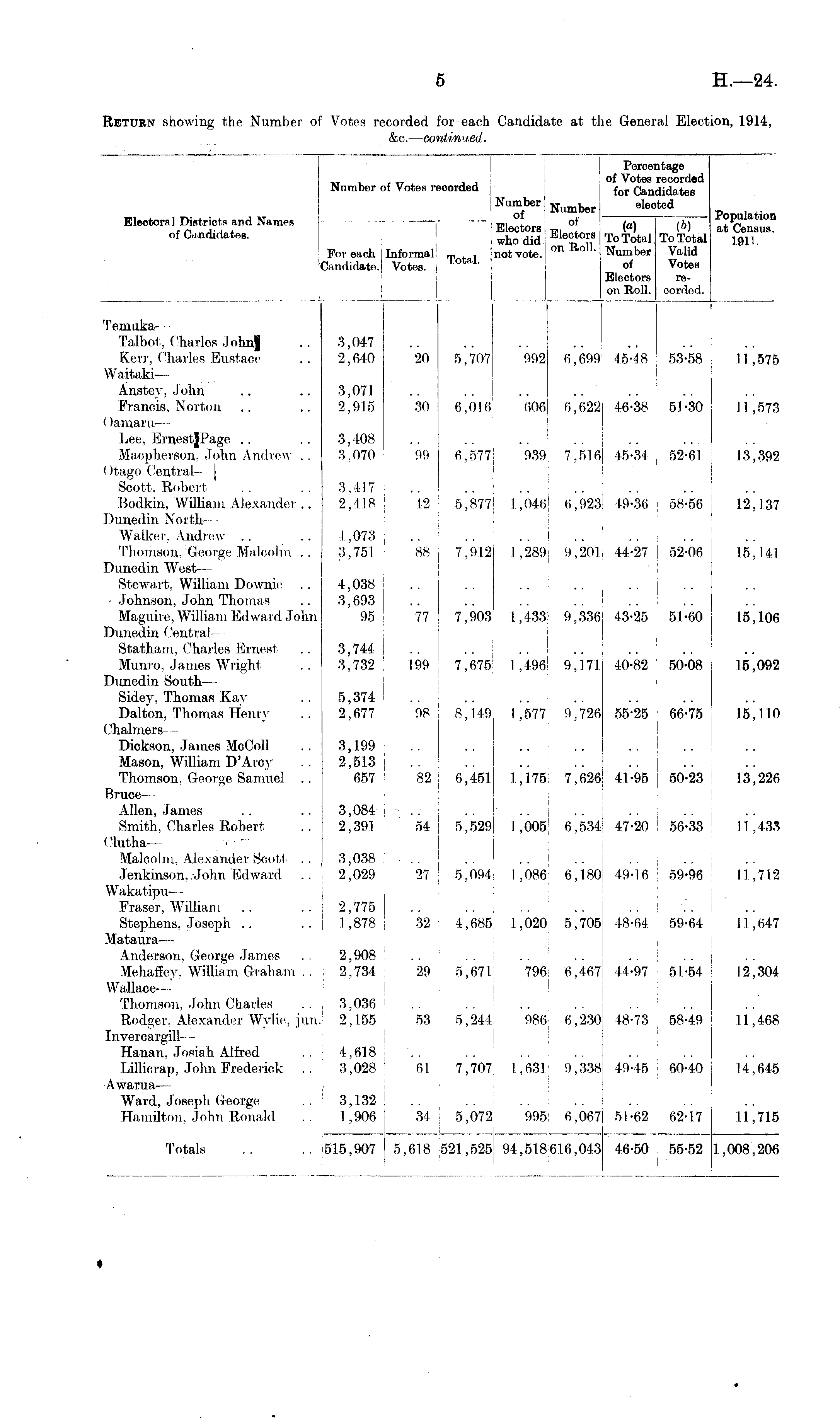 Return showing the Number of Votes recorded for each Candidate at the General Election, 1914, &c. — continued.
