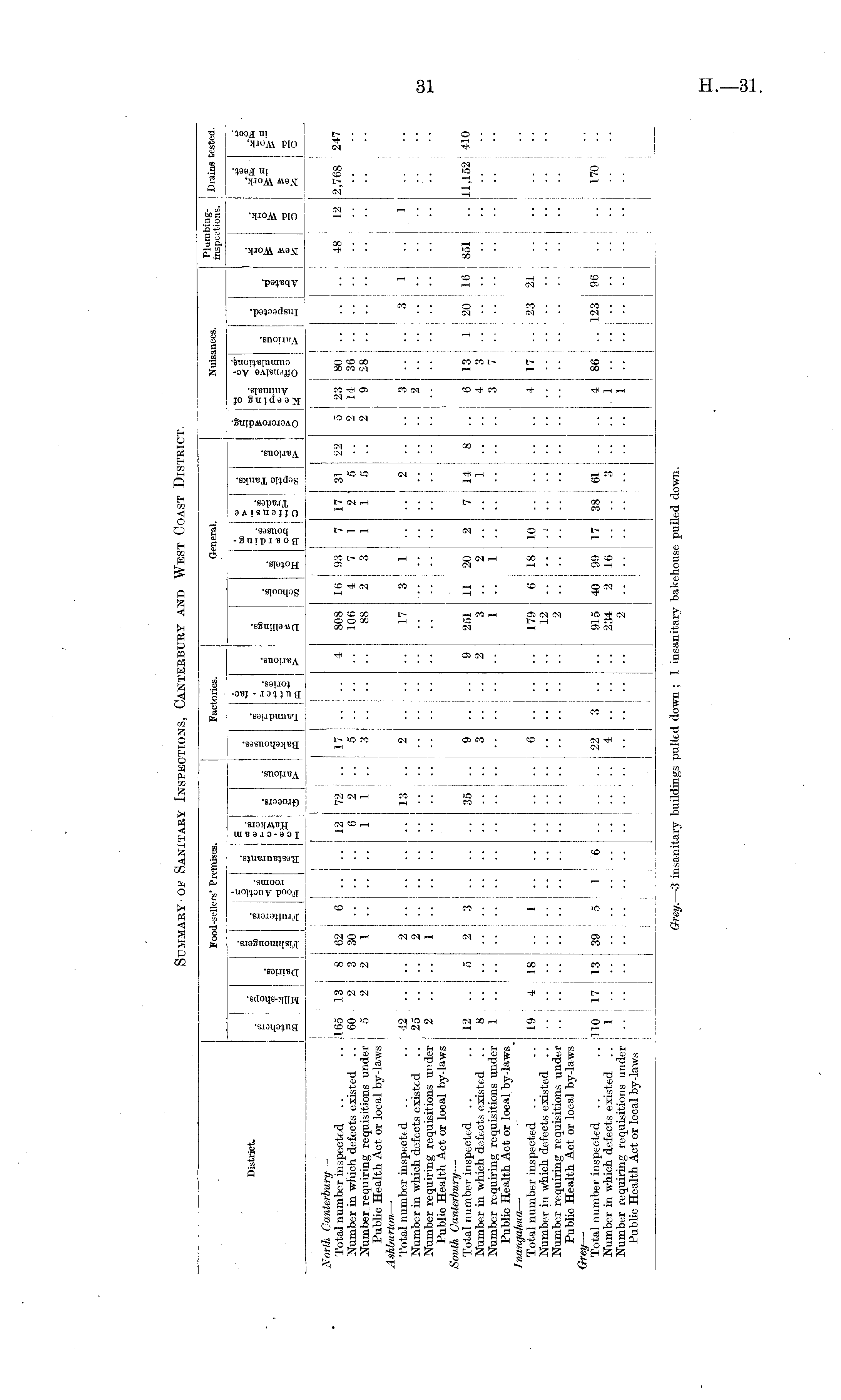 Summary of Sanitary Inspections, Canterbury and West Coast District.