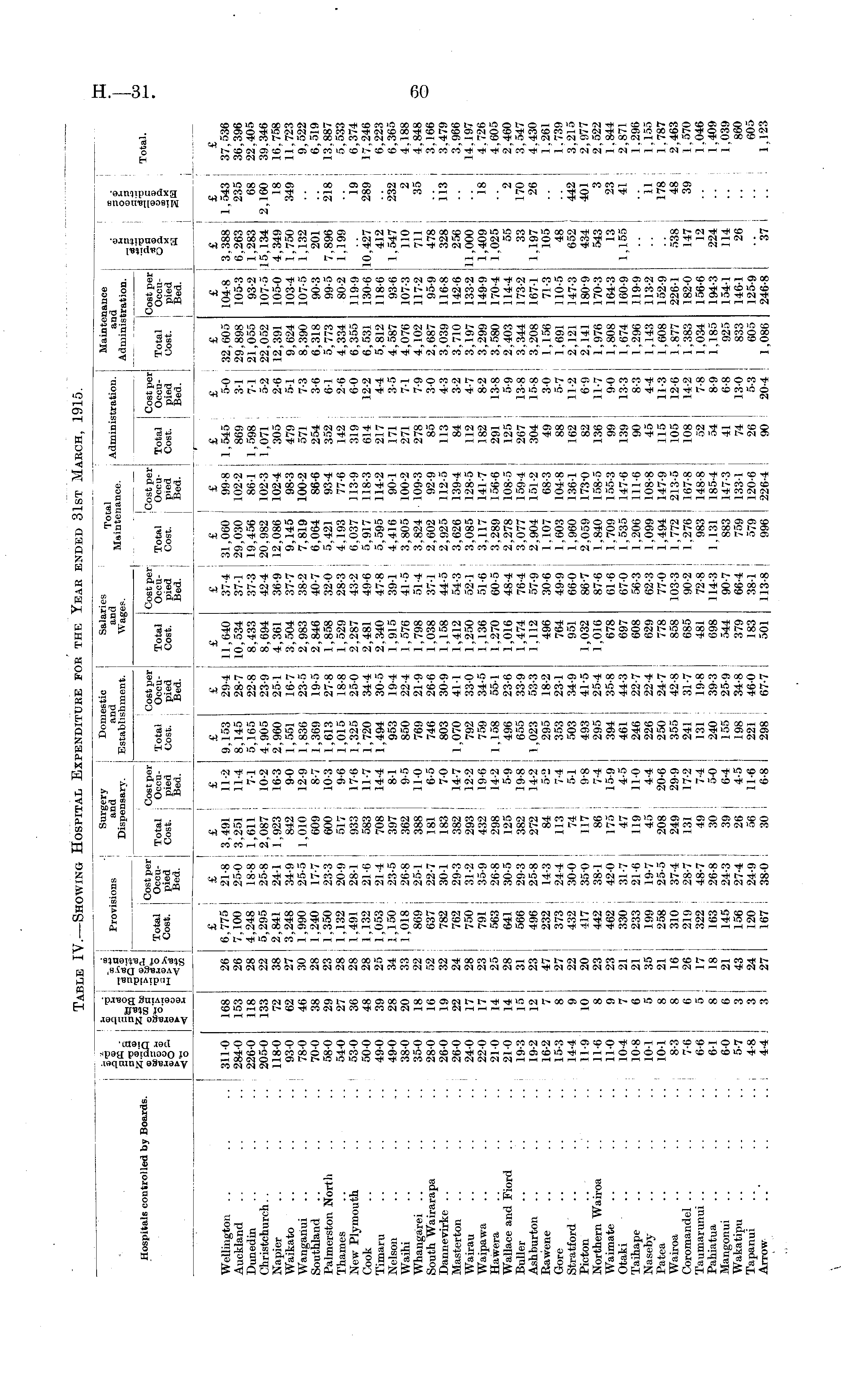 Table IV.—Showing Hospital Expenditure for the Year ended 31st March, 1915.