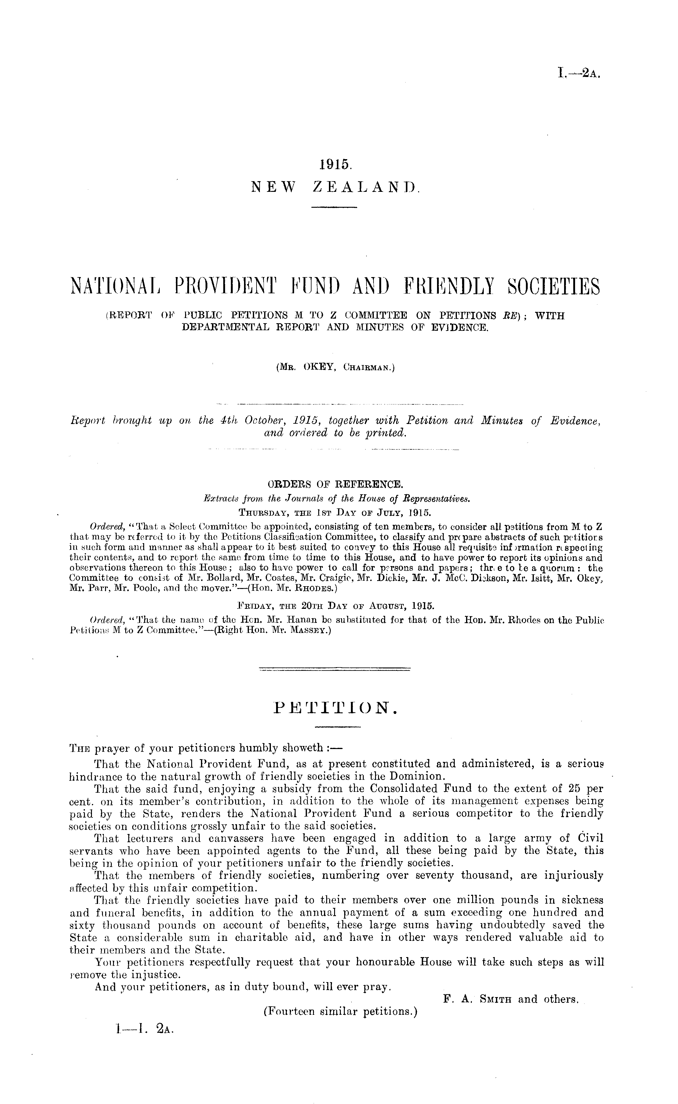 NATIONAL PROVIDENT FUND AND FRIENDLY SOCIETIES (REPORT OF PUBLIC PETITIONS M TO Z COMMITTEE ON PETITIONS RE); WITH DEPARTMENTAL REPORT AND MINUTES OF EVIDENCE. (Mr. OKEY, Chairman.)