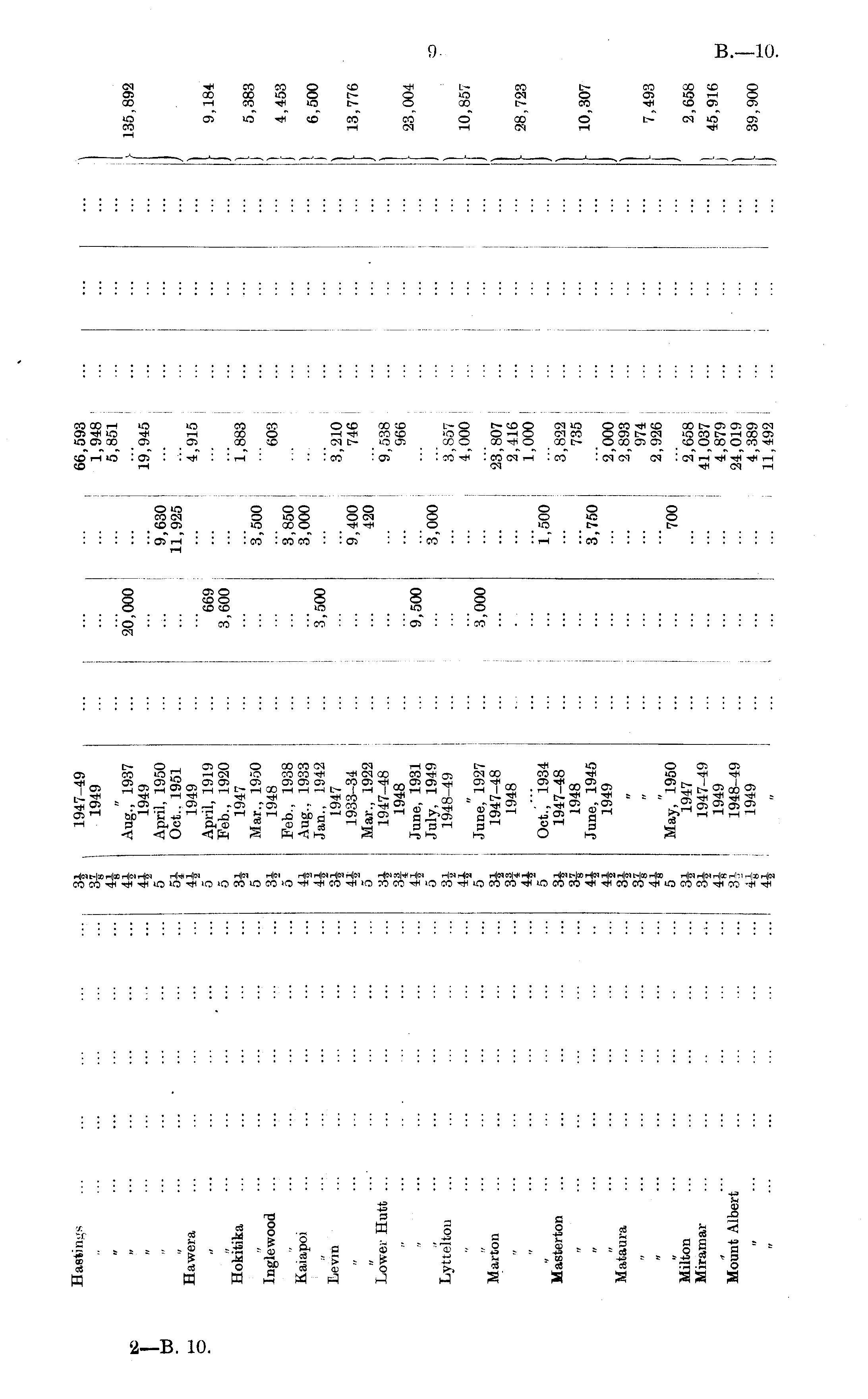 Hastings 3i 31 41 41 41 41 5 5 3i 5^ 31 5 4i 41 '-.1 41 31 si 41 5 3i 41 31 3| 41 34 31 41 41 3i 3| 41 5 3i 4-i 31 4J 41 *2 1947-49 1949 Aug.," 1937 1949 April, 1950 Oct.. 1951 1949 April, 1919 Feb., 1920 1947 Mar., 1950 1948 Feb.. 1938 Aug.. 1933 Jan., 1942 1947 1933-34 Mar., 1922 1947-48 1948 June, 1931 July, 1949 1948-49 June," 1927 1947-48 1948 Oct.! 1934 1947-48 1948 June, 1945 1949 May, "l950 1947 1947-49 1949 1948-49 1949 20,000 669 3,600 3,500 9,500 3,000 9,630 11,925 3,500 3,850 3,000 9,400 420 ... 3,000 1,500 | 3,750 700 66,593 1,948 5,851 19,945 ... 4,915 ... 1,883 603 3,210 746 9,538 966 3,857 4,000 23,807 2,416 1,000 \ 3,822 I 735 2,000 | 2,893 974 2,926 2,658 41,037 4,879 24,019 4,389 11,492 a •■• 135,892 a •■■ Hawera 9,184 Hokitika 5,383 Inglewood 4,453 Kaiapoi 6,500 Levin 13,776 Lower Hutt ... 23,004 Lytteltou 10,857 Marton 28,723 Masterton 10,307 Mataura 7,493 a ... Milton Miramar 2,658 Mount Albert 45,916 il 39,900 it • • •