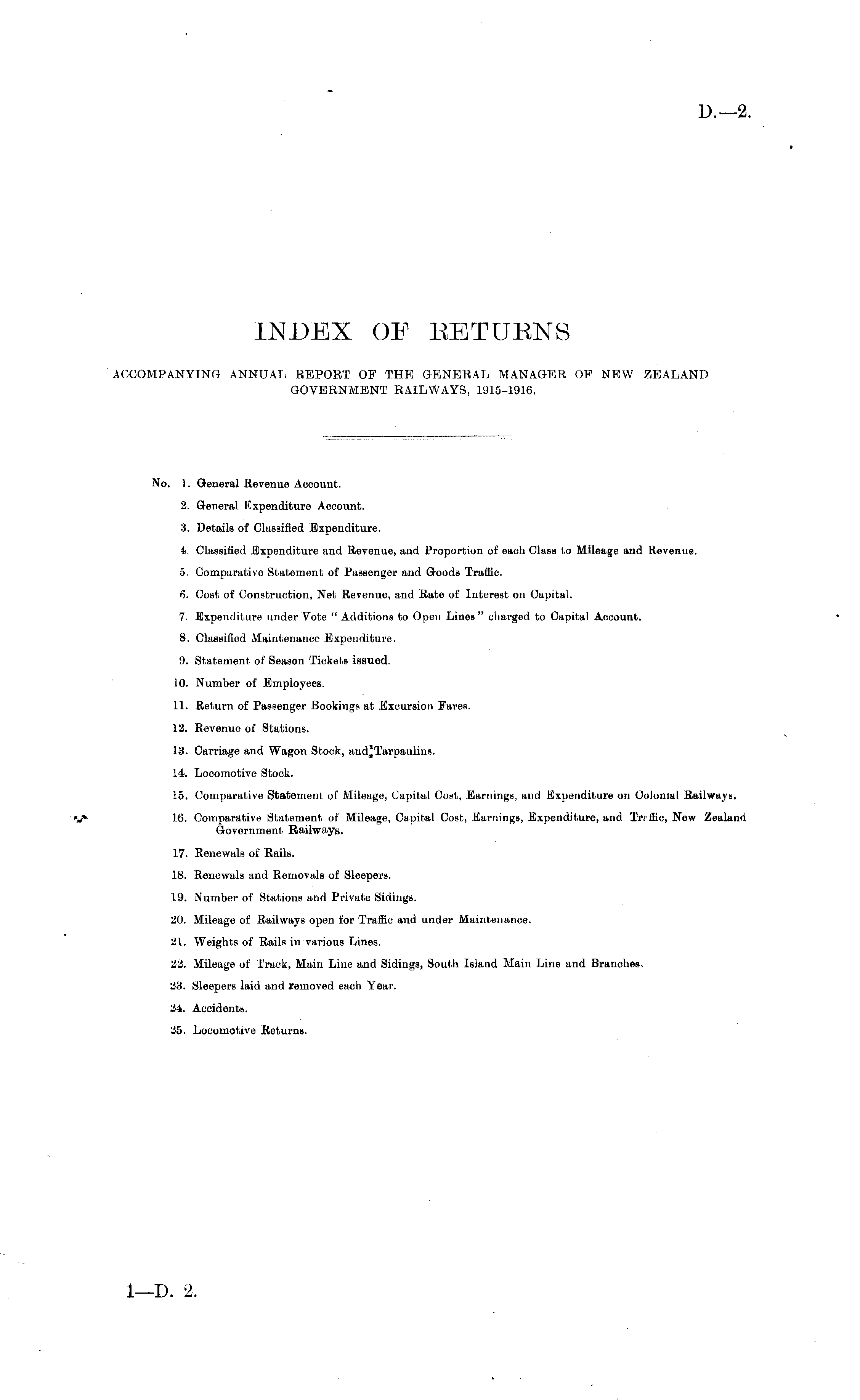 INDEX OF EETUENS ACCOMPANYING ANNUAL REPORT OF THE GENERAL MANAGER OF NEW ZEALAND GOVERNMENT RAILWAYS, 1915-1916.