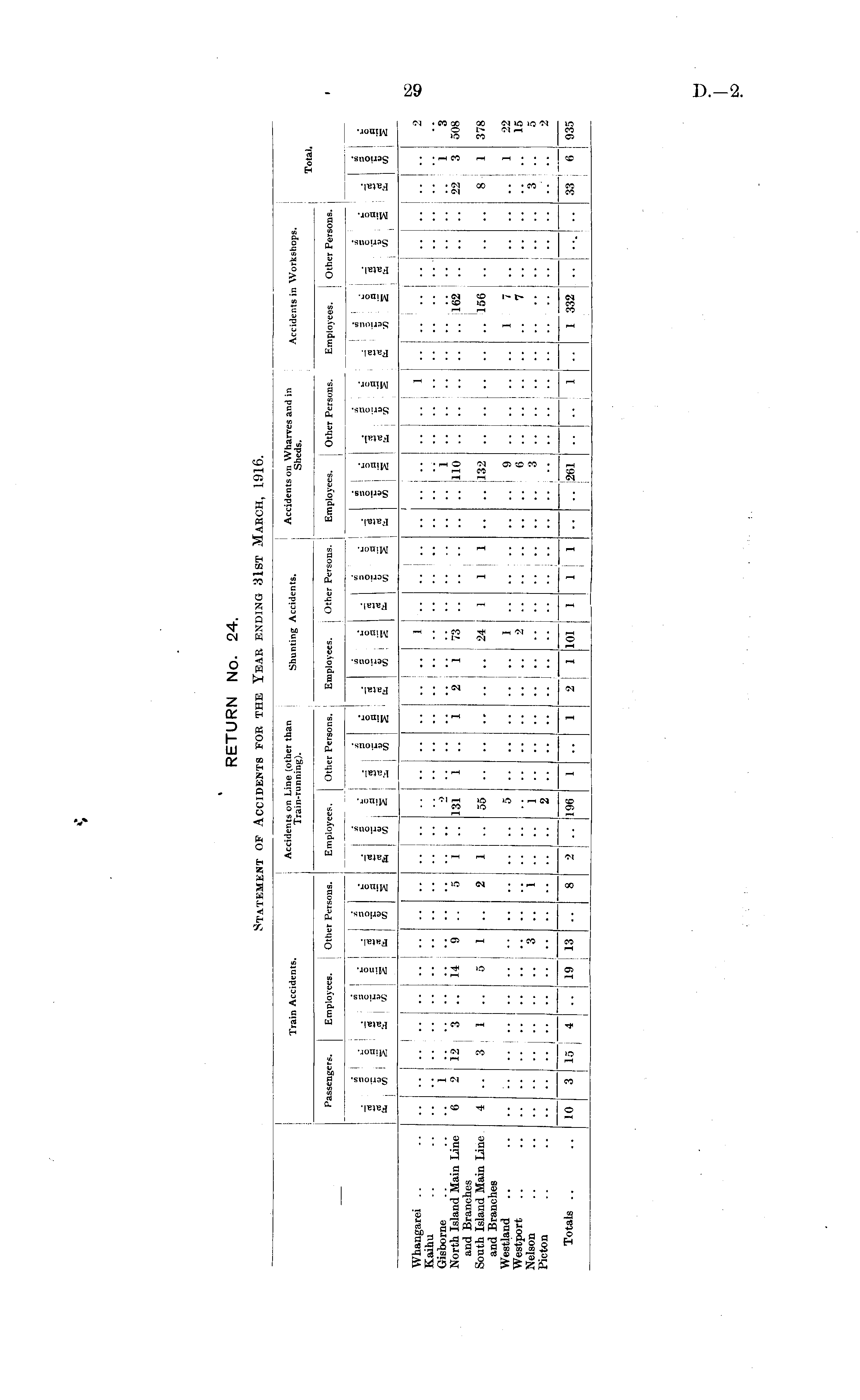 RETURN No. 24. Statement of Accidents for the Year ending 31st March, 1916.