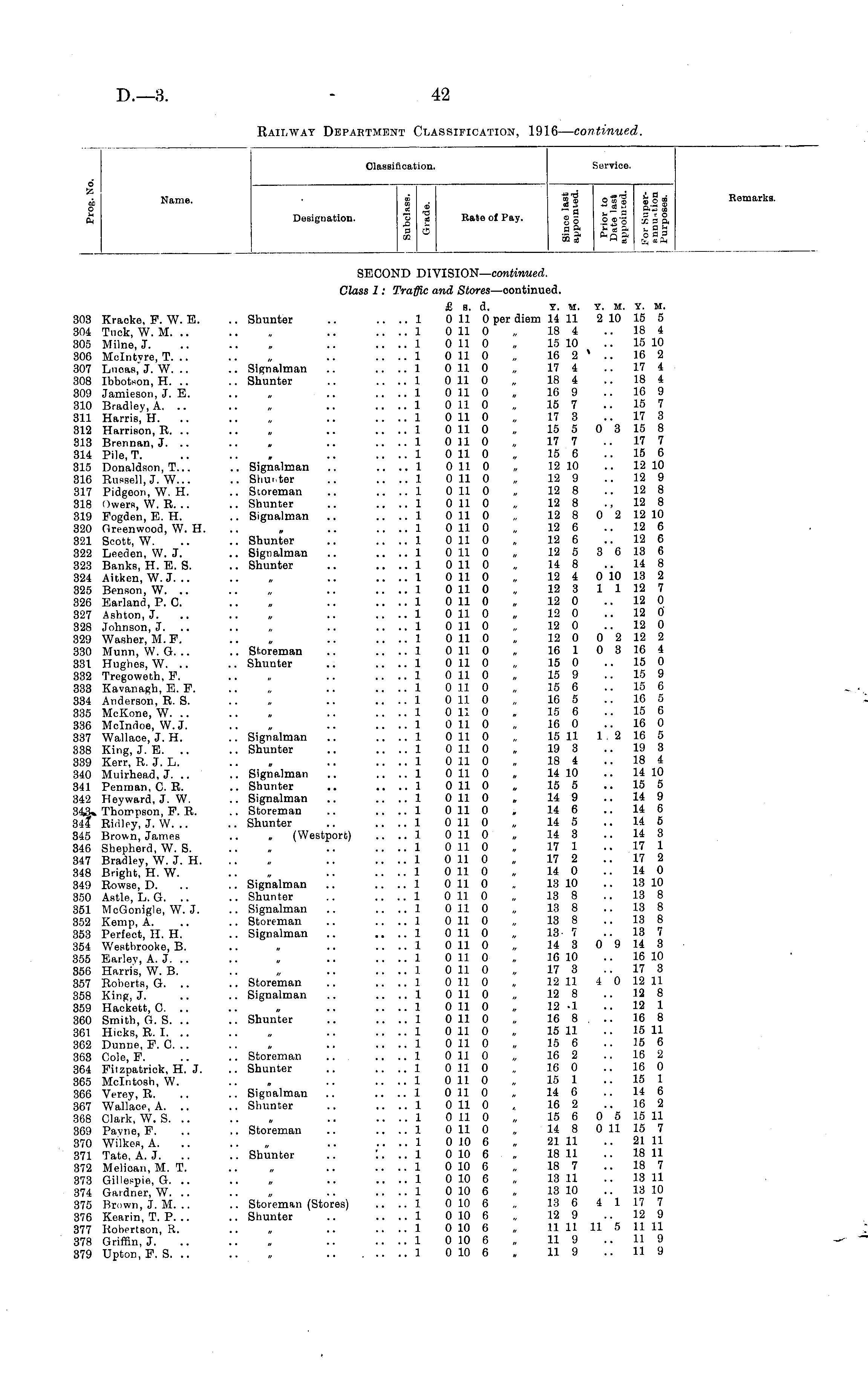 Railway Department Classification, 1916— continued.