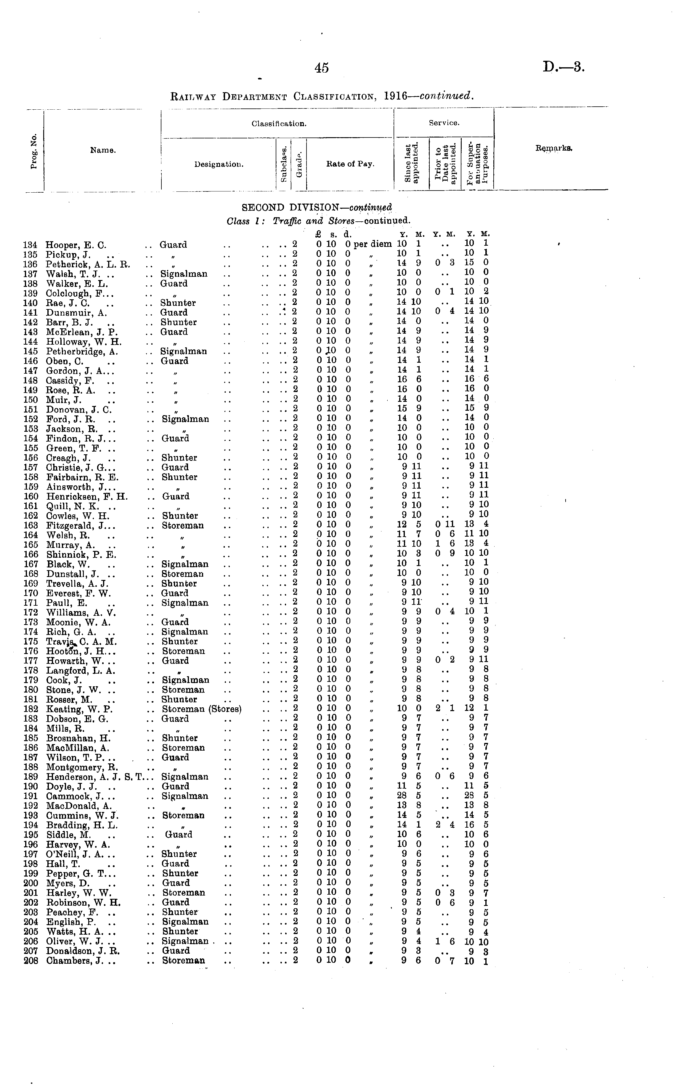 Railway Department Classification, 1916 — continued.