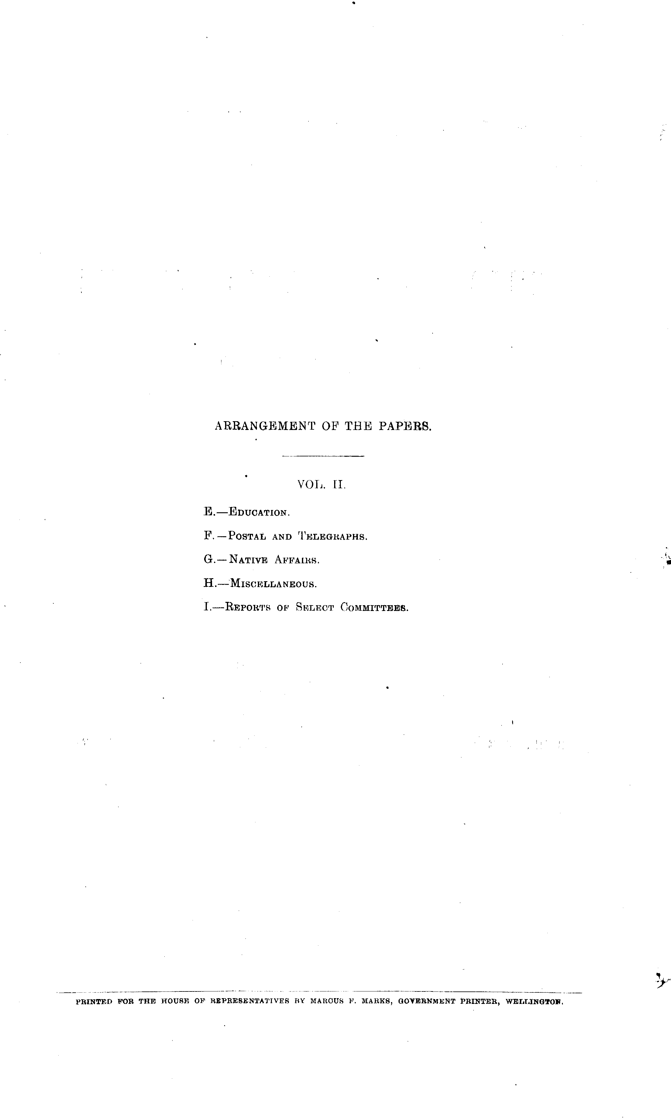 ARRANGEMENT OF THE PAPERS. VOL. IT. E.—Education. F. — Postal and Telegraphs. G.—Native Affairs. H.—Miscellaneous. I. —Reports of Select Committees.