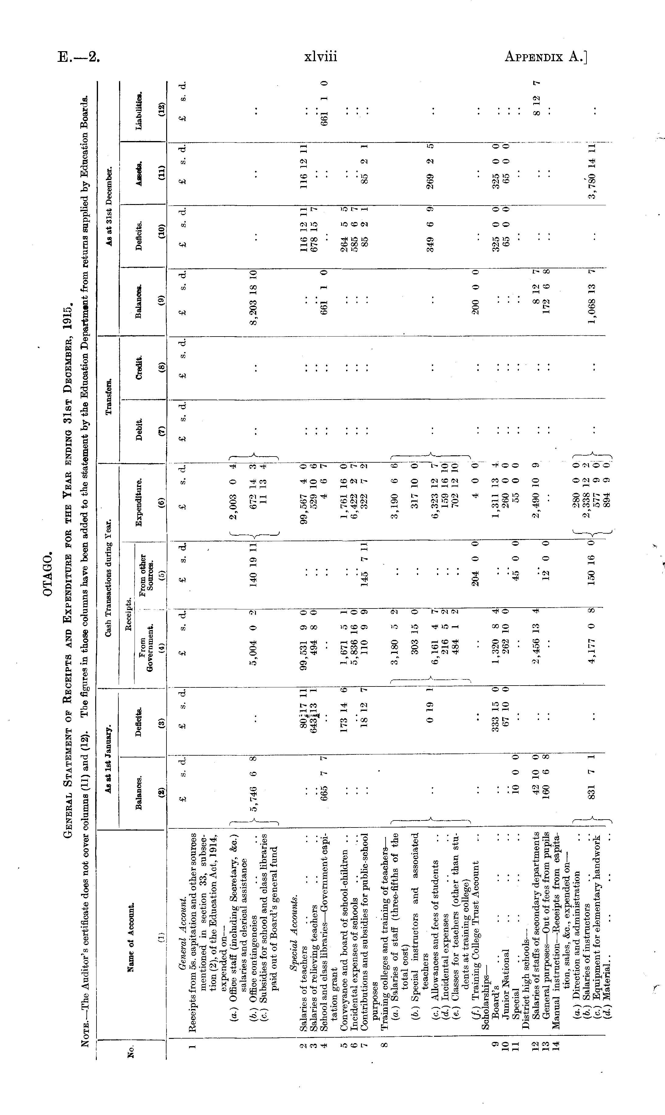 OTAGO. General Statement of Receipts and Expenditure for the Year ending 31st December, 1915.
