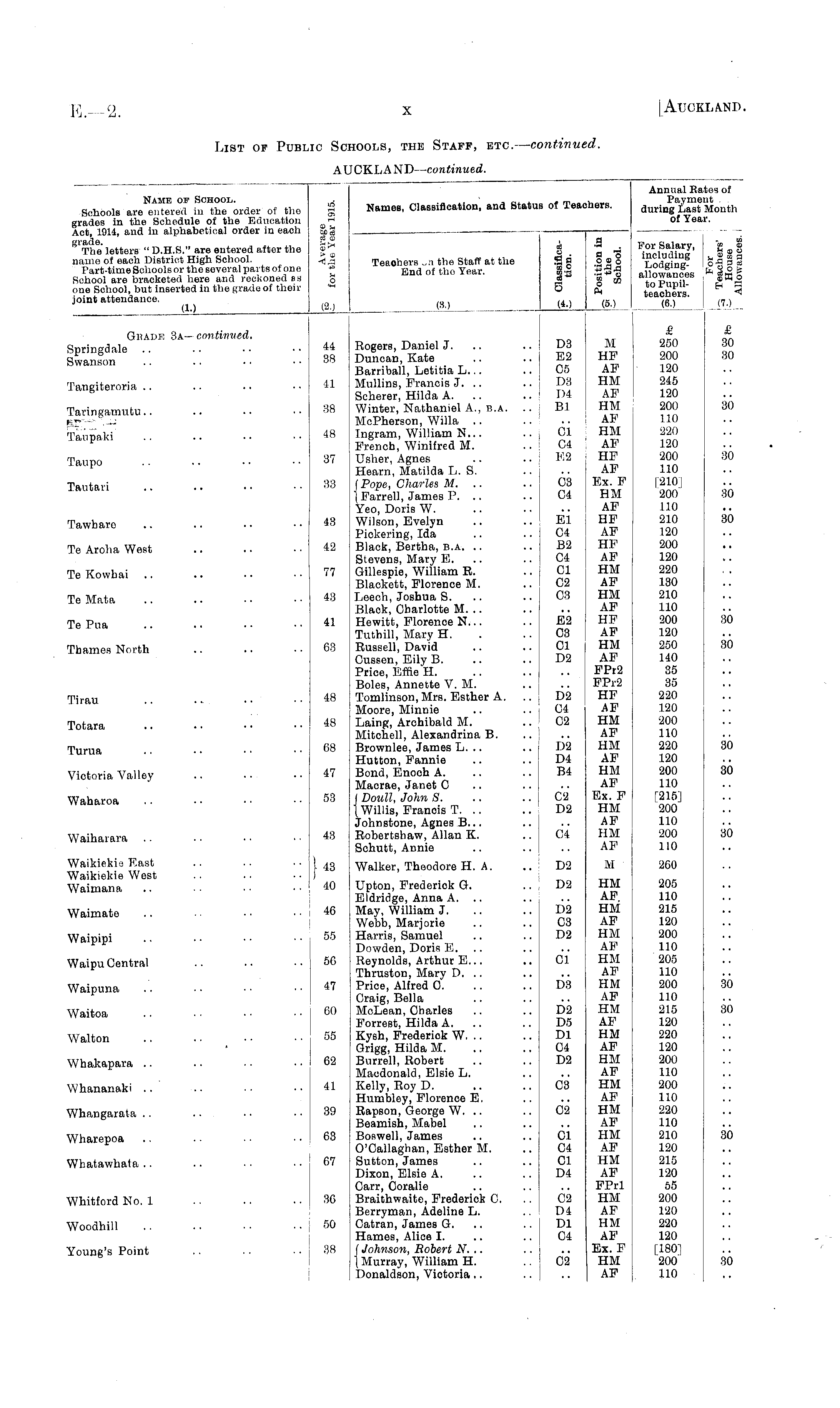List of Public Schools, the Staff, etc. — continued. AUCKLAND—continued.