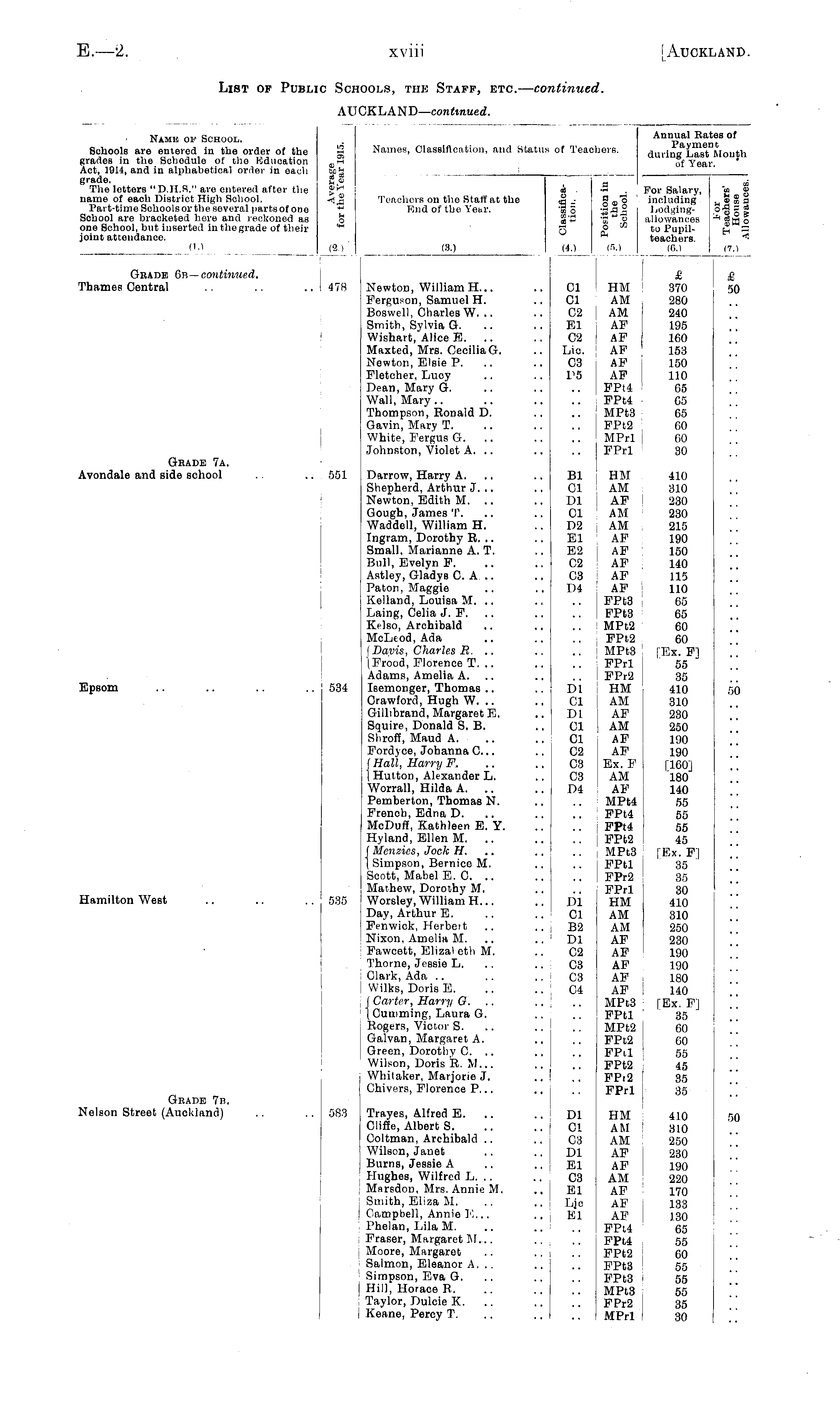 List of Public Schools, the Staff, etc. — continued. AUCKLAND— continued.