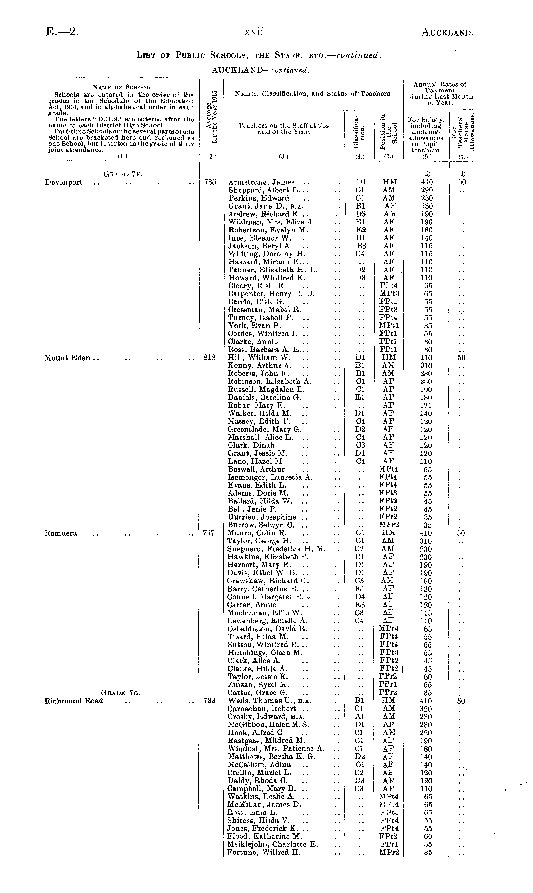 List of Public Schools, the Staff, etc. — continued. AUCKLAND- continued.