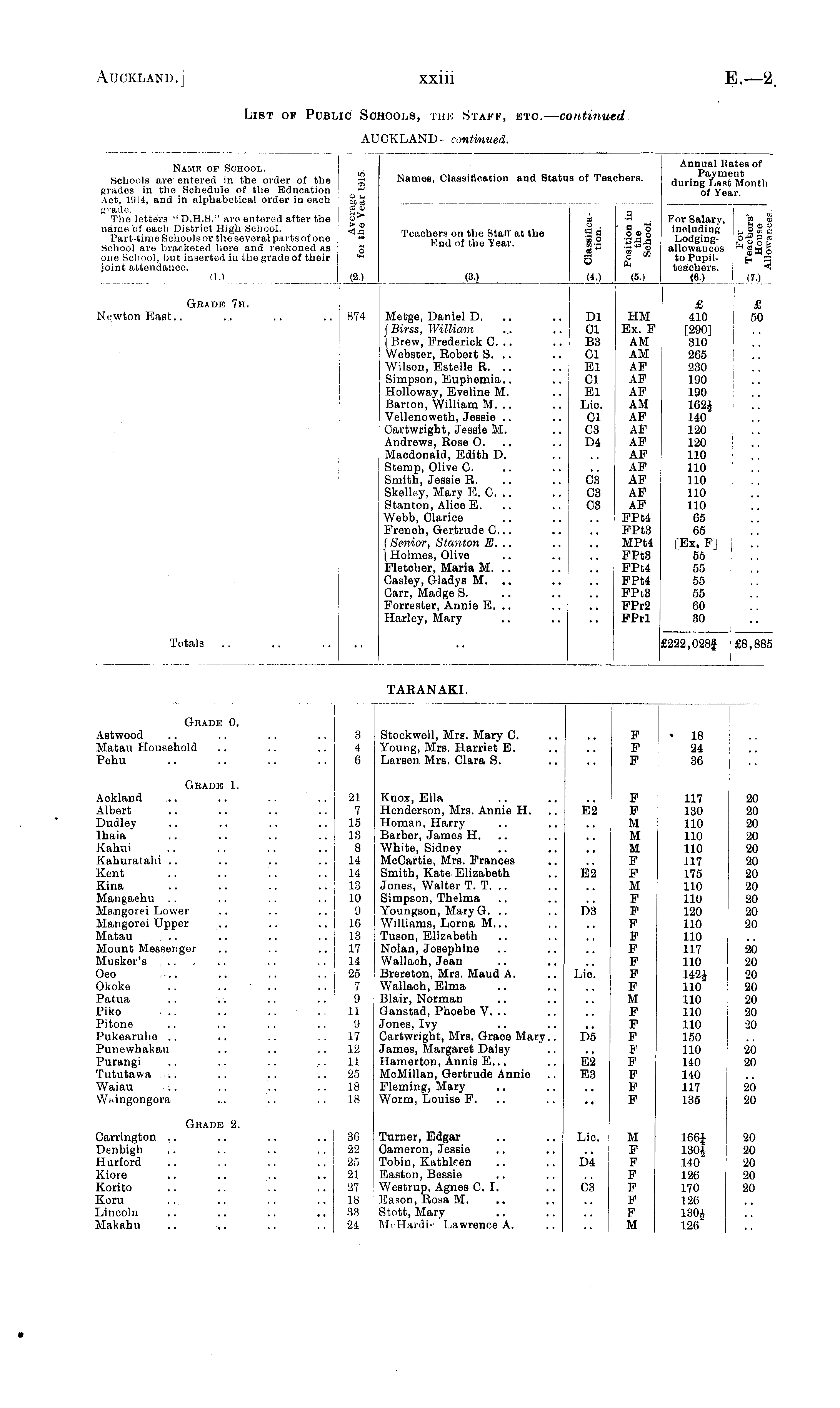 List of Public Schools, the Staff, etc. — continued. AUCKLAND-continued.