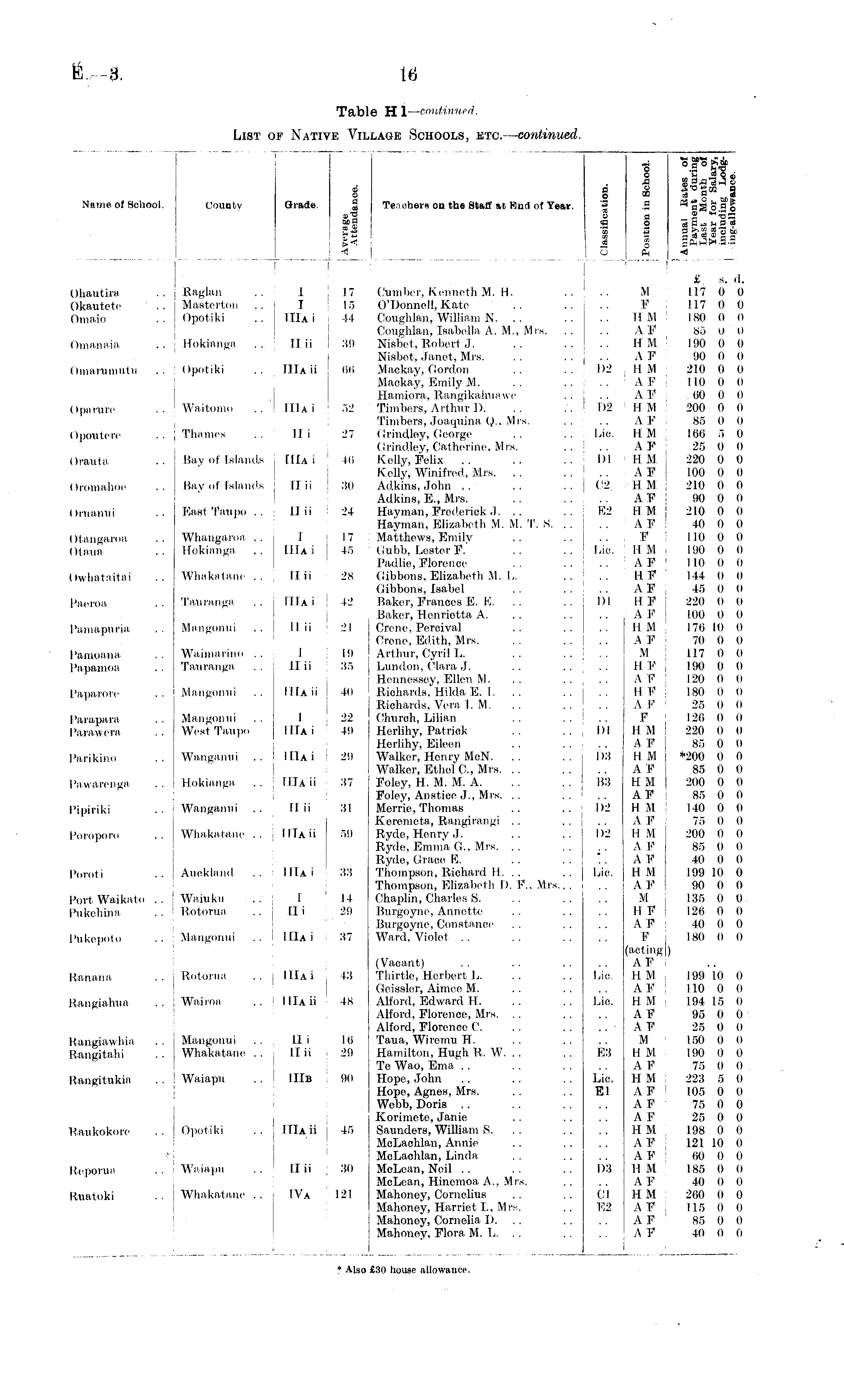 6 a Name of School. County Grade. g Teachers on the Staff at Rnd of Year. rJB W£ -A o tH a 1 * O !- _Ofli | "Sra.Jo § 1 I'S" 2 S v a 2 _s <o o „a_r.a<_i 3 _ s •*• _S * u t» O Ps *t . Ohautira .. Raglan .. ■ 1 17 Cumber, Kenneth M. H. Okautetc .. Masterton .. I 15 O'llonnell, Kate Omaio .. Opotiki . . TIIa i 44 Coughlan, William N. . , Coughlan, Isabella A. _., Mrs. Omanaia .. Hokianga .. llii 39 Nisbet, Robert J. Nisbet, Janet, Mrs. Oiiiariiniiitii .. ; Opotiki .. IIIa ii 66 Mackay, Gordon Mackay, Emily M. Hamiora, Rangikalntawe Oparure .. Waitomo .. IllAi 52 Timbers, Arthur 1). Timbers, Joaquina Q., Mrs. Opputer-c . • Thames ., II i 27 Grindley, George Grindley, Catherine, Mrs. Orauta .. Bay of Islands j [IIa i ' 46 Kelly, Felix Kelly, Winifred, Mrs. (Iroinahoe .. Bay of Islands j llii 80 Adkins, John .. Adkins, E., Mrs. (Iriianui .. East Taupo .. II ii 24 Hayman, Frederick.). .. Hayman. Elizabeth M. M. T. S. . . Otangaroa .. Whangaroa .. I 17 Matthews, Emily Otaua .. Hokianga .. IIIa i I 45 Gubb, Lester F. Padlie, Florence Owhataitai .. Whakatane .. I llii 28 Gibbons, Elizabeth M. L. Gibbons, Isabel Paeroa ., Tauranga .. I IIIa i 42 Baker, Frances E. E. . , Baker, Henrietta A. Pamaptiria .. Mangonui ..I II ii 21 Crene, Percival Crene, Edith, Mrs. Bamoana . . Walniarino .. I 19 Arthur, Cyril L. Papamoa . . Tauranga II ii 35 Lundon, Clara J. Hennessey, Ellen M. Paparore .. Mangonui .. IllAii 40 Richards, Hilda E. I. Richards, Vera I. M. I'aiaparn . . Mangonui . . I 22 Church, Lilian I'arawera .. West Taupo IllAi 49 Herlihy, Patrick Hcrlihy, Eileen Parikino .. Wanganui .. I__i I 29 Walker, Henry MoN. Walker, Ethel C, Mrs. . . Pawarenga .. Hokianga .. IIIa ii 37 Foley, H. M. M. A. Foley, Aiistice J., Mrs. .. Pipiriki .. Wanganui .. II ii 31 Merrie, Thomas Keremeta, Rangirangi Poroporo .. Whakatane .. j IllAii 59 Ryde, Henry J. Ryde, Emma G, Mrs. .. Ryde, Grace. E. Poroti .. Aueklaiid 1 IIa i 33 Thompson, Richard II. .. Thompson, Elizabeth I). F., Mrs.. . Port Waikatu .. Waiuku .. I .14 Chaplin, Charles S. Pukehina .. Rotorua .. Hi 29 Burgoyne, Annette Burgoyne, Constance Pukepoto .. Mangonui .. I IIIa i 37 Ward, Violet .. £ s. il. M 117 0 0 F 117 0 0 II M : 180 0 0 . . A F 85 0 ' 0 HM 190 0 0 A F 90 0 0 1)2 , H M 210 0 0 . , .' A F 110 0 I) .. A F I oo o ii 1)2 : H M 200 0 0 .. AF 85 0 0 Lie. HM 166 5 0 AF 25 0 0 III ; HM 220 0 0 .. ; A F 100 0 0 02 HM 210 0 0 AF 90 0 0 E2 HM 210 0 0 .. AF 40 0 0 F III) 0 0 Lie. j II M 190 0 0 .. A F 110 0 0 .. HF ' 144 0 o A F 45 0 0 1)1 II F 220 0 0 AF 100 0 0 HM 176 10 0 A F 70 0 0 M 117 0 0 11 F 190 0 0 A F 120 0 (I H. F 180 0 0 A P ■ 25 (I 0 F 126 I) o 1)1 HM 220 0 0 A F 85 0 0 I )3 H M *200 0 0 A F 85 (I (I B3 H M 200 0 0 A F | 85 0 0 1)2 H M : 140 0 0 A F 75 0 0 1)2 H M 200 I) 0 A F 85 0 II '.. A F 40 0 II Lie. H M 199 10 0 A F 90 0 0 M 135 0 0 H F 126 0 0 A F 40 0 0 F 180 I) II (acting ) AF '.' Lie. HM i 199 10 (I AF I 10 0 0 Lie. H M 194 15 6 A F 95 0 0 . . A F 25 0 0 M 150 0 0 E3 H M. 190 0 0 A F 75 0 0 Lie. H M : 223 5 0 El AF ! 105 0 0 A F : 75 0 0 AF 25 0 0 HM 198 0 0 A F 121 10 0 AF 00 I) 0 1)3 II M. 185 I) 0 A F 40 0 0 Cl HM 260 0 0 E2 AF j 115 0 I) AF 85 0 0 A V -10 II 0 (Vacant) Banana .. Rotorua .. IIIa i j 43 Thirtle, Herbert L. Geissler, Aimee M. Itangiahua .. Wairoa .. IllAii 48 Alford, Edward H. Alford, Florence, Mrs. Alford, Florence C. Bangiawhia .. Mangonui .. Hi 16 Taua, Wiretnti II. Bangitahi . . Whakatane . . II ii i 29 Hamilton, Hugh R. W, TeWao, Etna'.. Bangitukia .. ! Waiapu .. IIIb 90 Hope, John Hope, Agnes, Mrs. Webb, Doris Korimeto, Janie B.aukokore .. Opotiki .. IllAii 45 Saunders, William S. McLaohlan, Annie McLachlan, Linda Beporua . ■ Waiapu . . II ii 30 McLean, Neil McLean, Hinemoa A., Mrs. Ruatoki . . Whakatane . . IVa 121 Mahoney, Cornelius Mahoney, Harriet I., Mrs. Mahoney, Cornelia I). Mahoney, Flora M. L. . . * Also £30 house allowance.