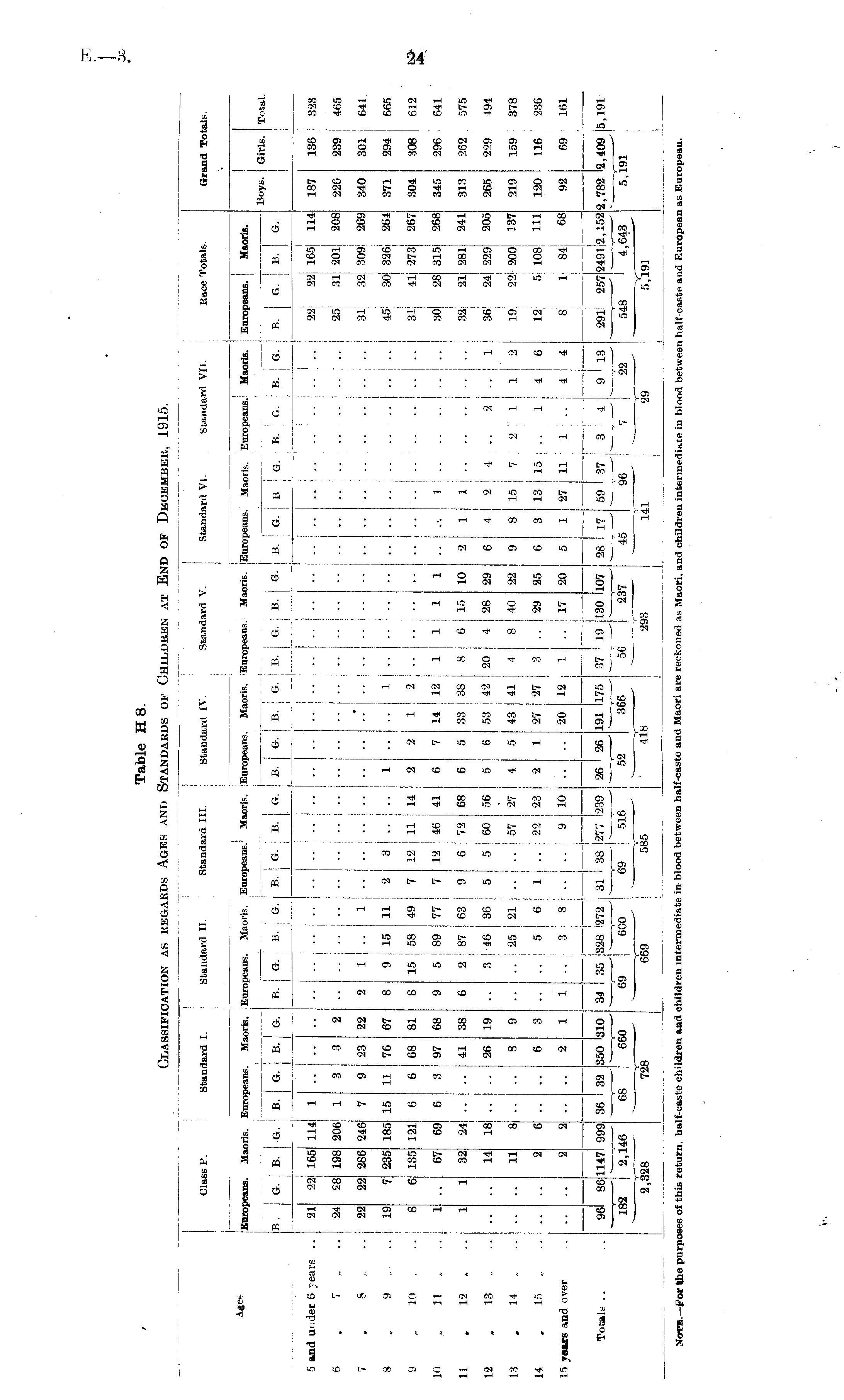 Table H8. Classification as regards Ages and Standards of Children at End of December, 1915.