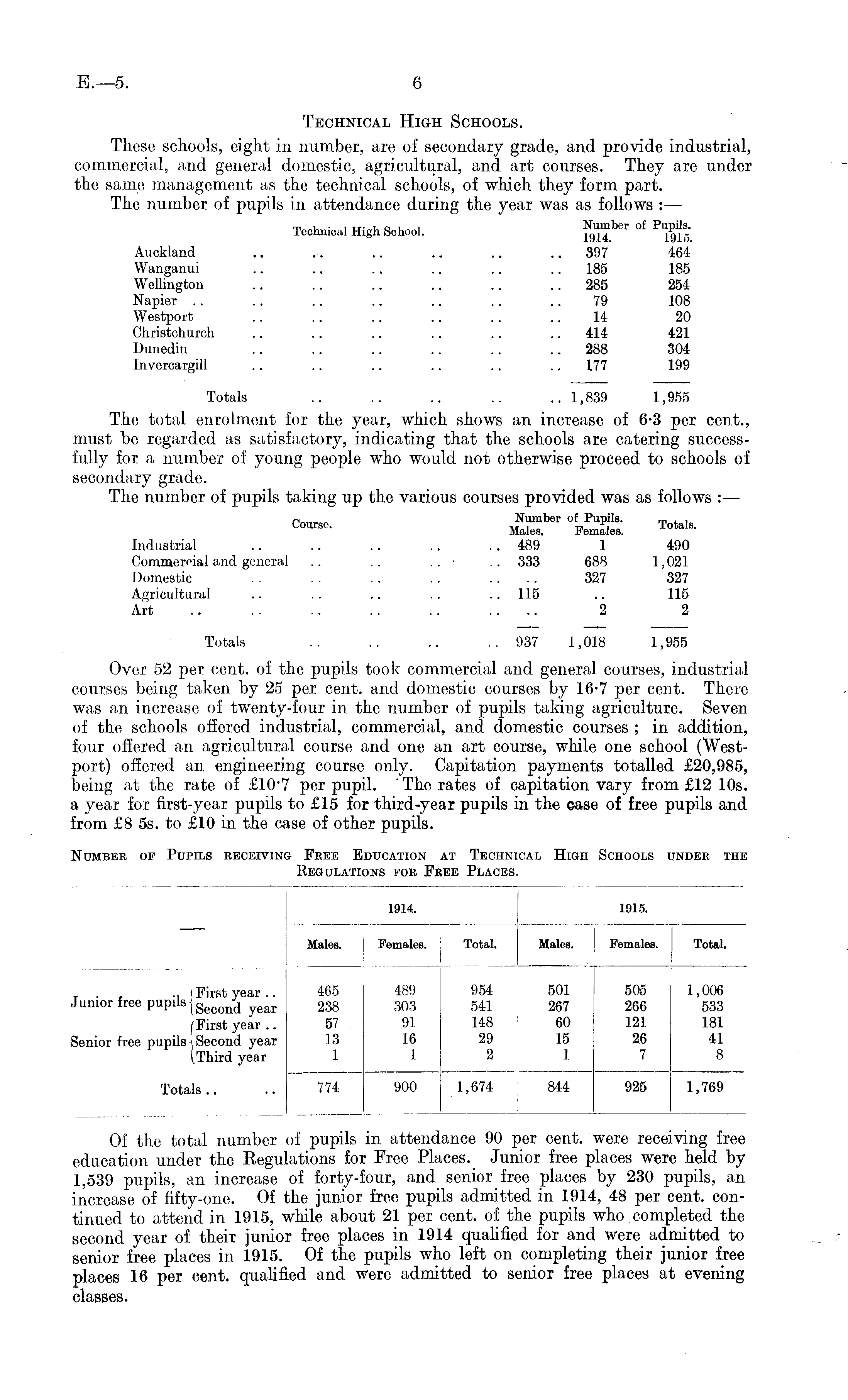1914. 1915. Males. Females. Total. Males. Females. Total. . . , ., (First year .. unior free pupils | Seco / dyear (First year .. ienior free pupils -jSecond year (Third year 465 238 57 13 1 489 303 91 16 1 954 541 148 29 2 501 267 60 15 1 505 266 121 26 7 1,006 533 181 41 8 Totals 774 900 1,674 844 925 1,769