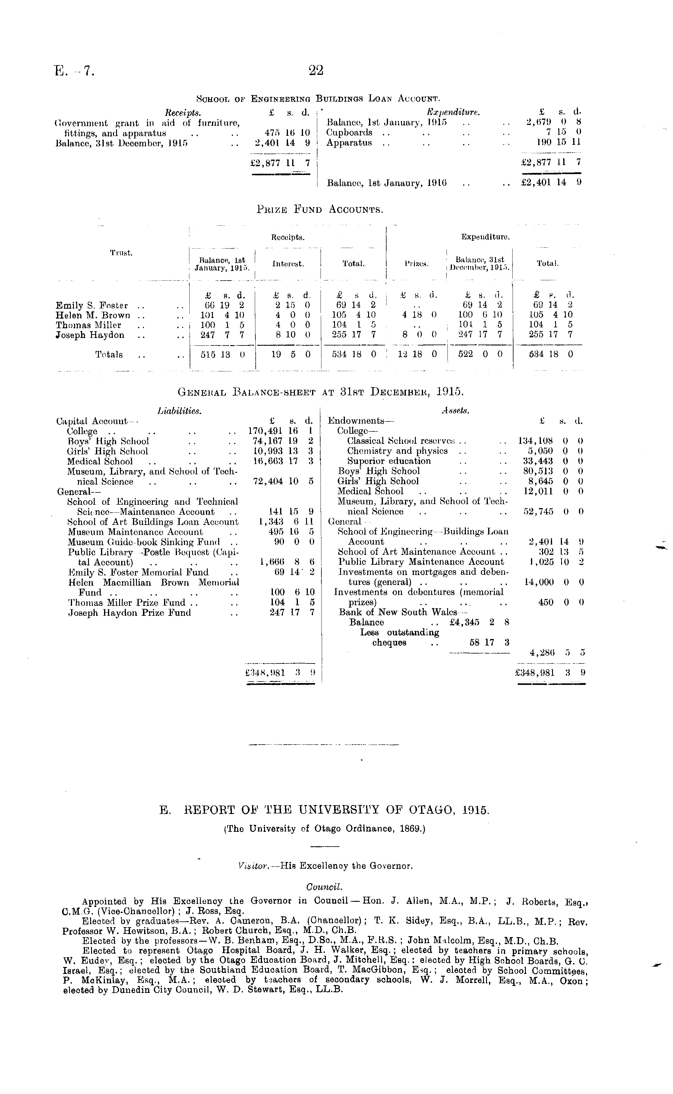 E. REPORT OP THE UNIVERSITY OF OTAGO, 1915. (The University of Otago Ordinance, 1869.)