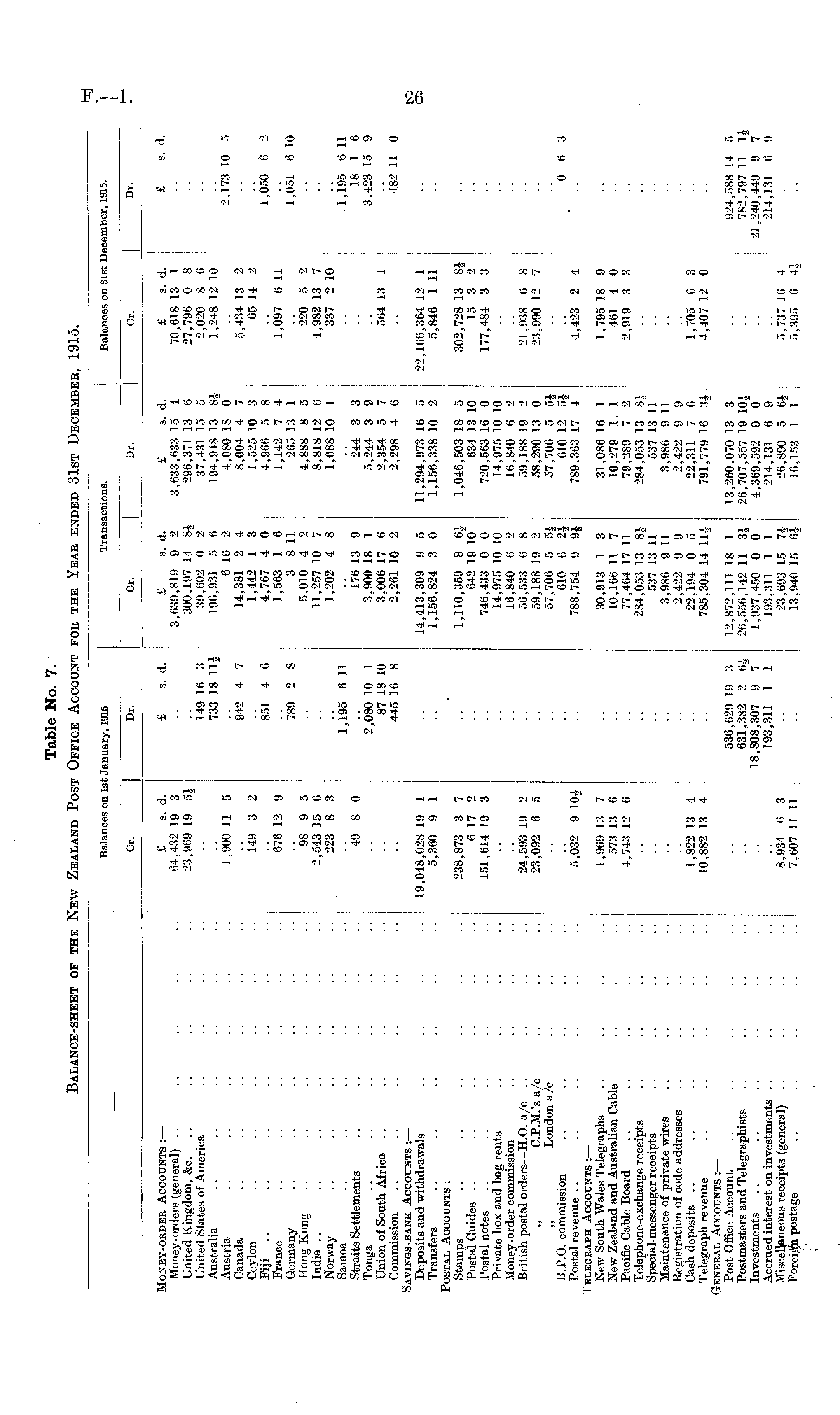 Table No. 7. Balance-sheet of the New Zealand Post Office Account for the Year ended 31st December, 1915.