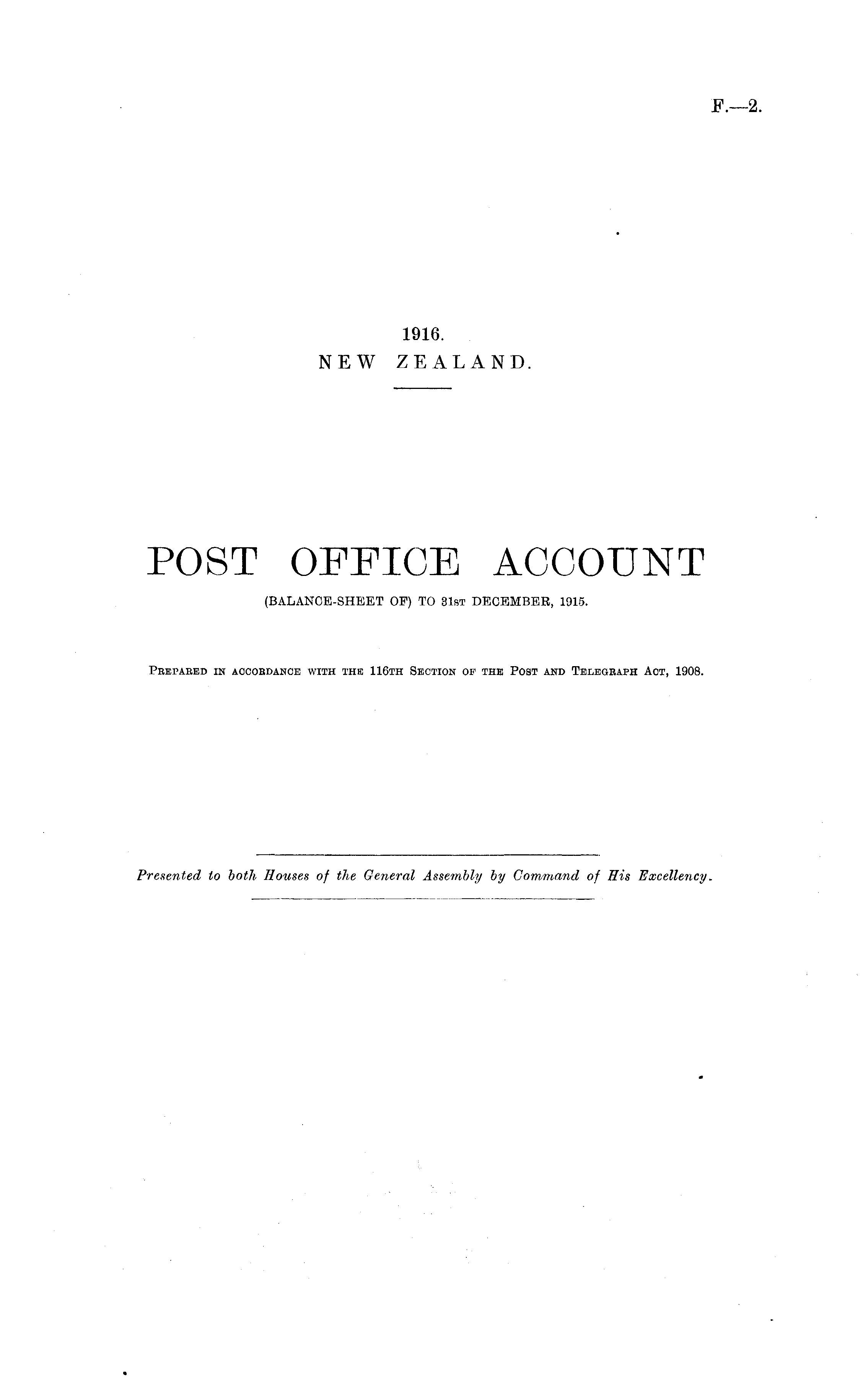 POST OFFICE ACCOUNT (BALANCE-SHEET OF) TO 31st DECEMBER, 1915. Prepared in accordance with the 116th Section of the Post and Telegraph Act, 1908.