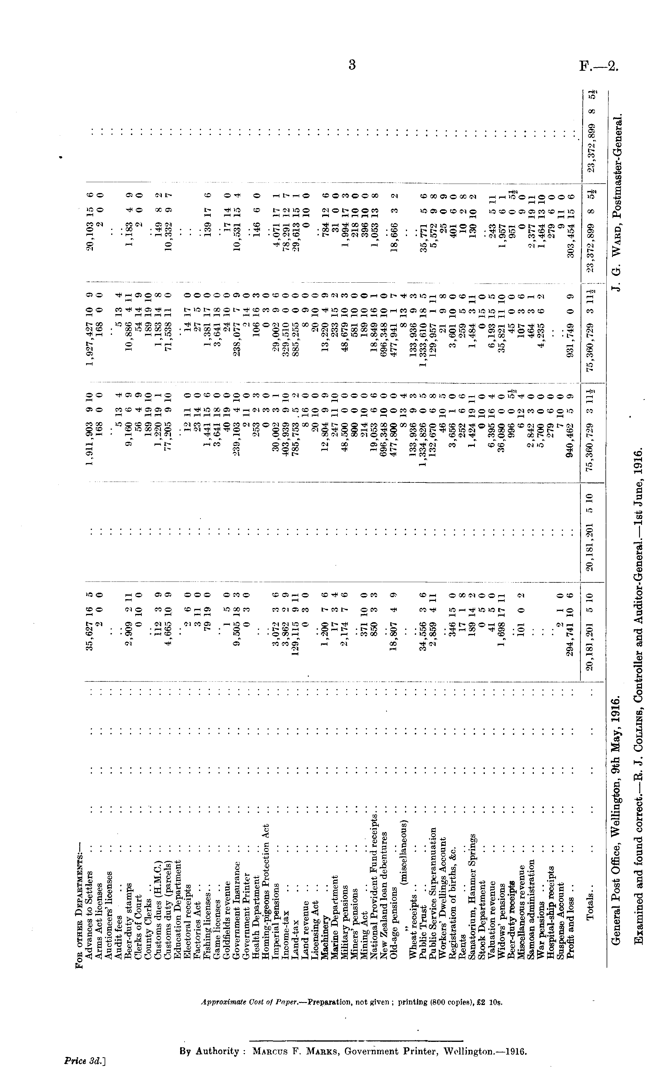 General Post Office, Wellington, 9th May, 1916. J. G. Ward, Postmaster-General. Examined and found correct.— R. J. Collins, Controller and Auditor-General.— Ist June, 1916.