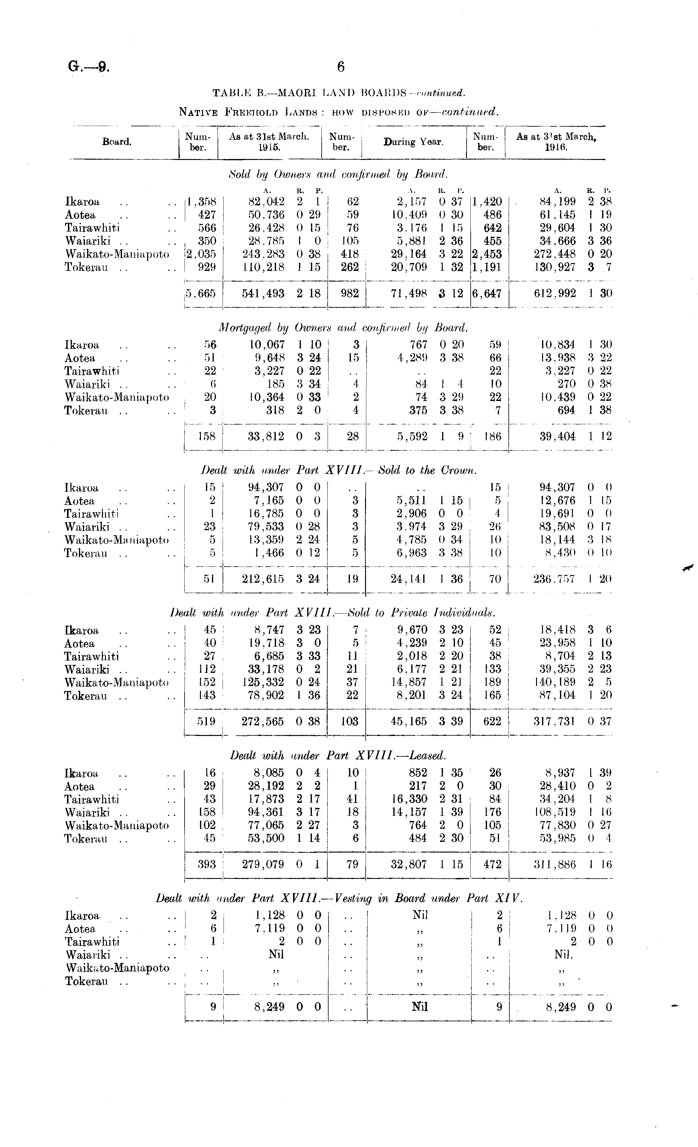 TABLE B.—MAORI LAND BOARDS—continued. Native Freehold Land: how disposed of—continued.