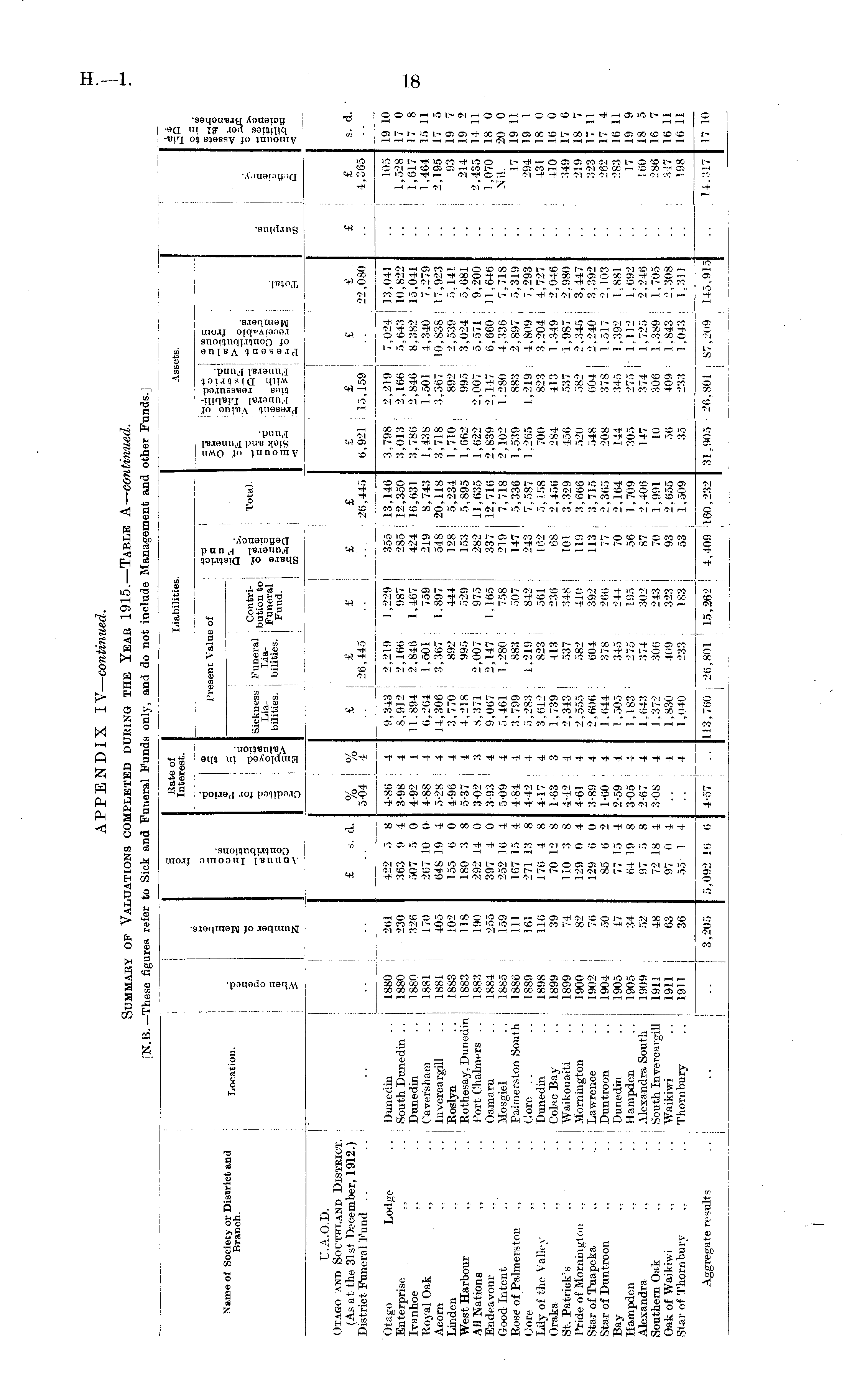 APPENDIX IV— continued. Summary of Valuations completed during the Year 1915.— Table A— continued. [N.B.—These figures refer to Sick and Funeral Funds only, and do not include Management and other Funds.]