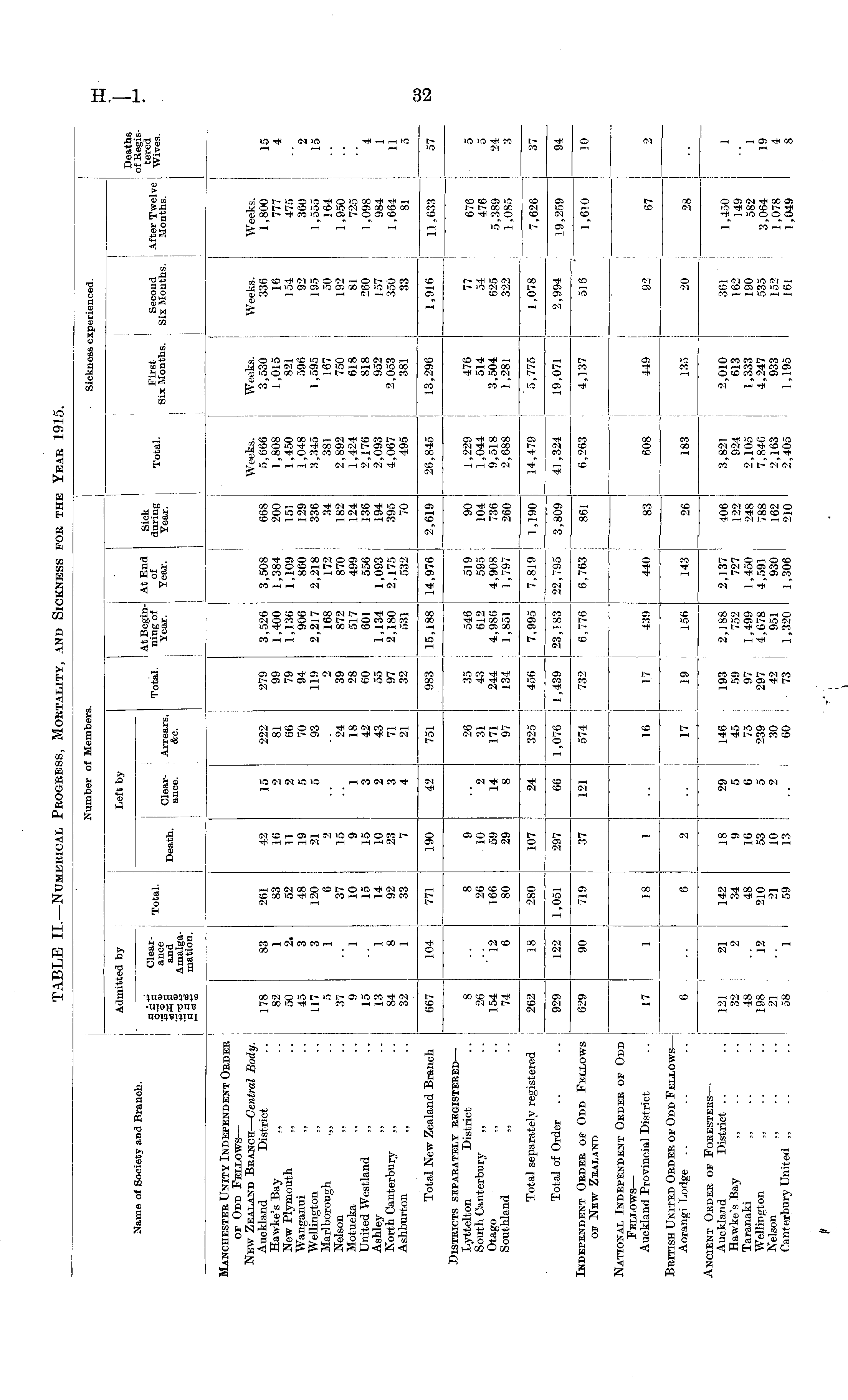 TABLE II.—Numerical Progress, Mortality, and Sickness for the Year 1915.