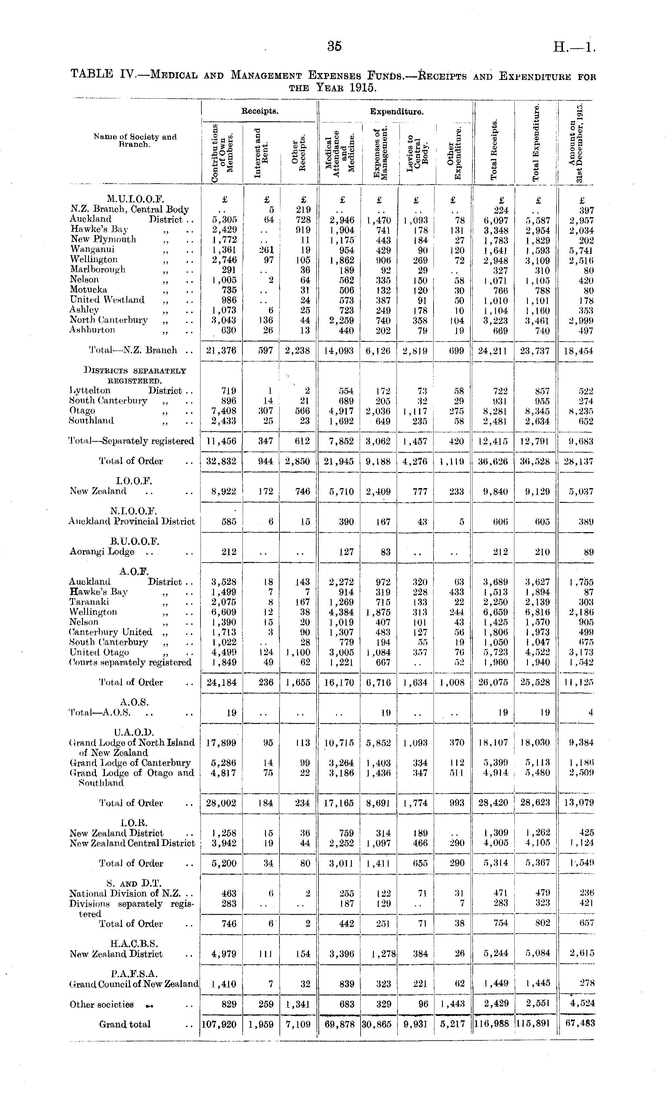 TABLE IV.—Medical and Management Expenses Funds.— Receipts and Expenditure for the Year 1915.
