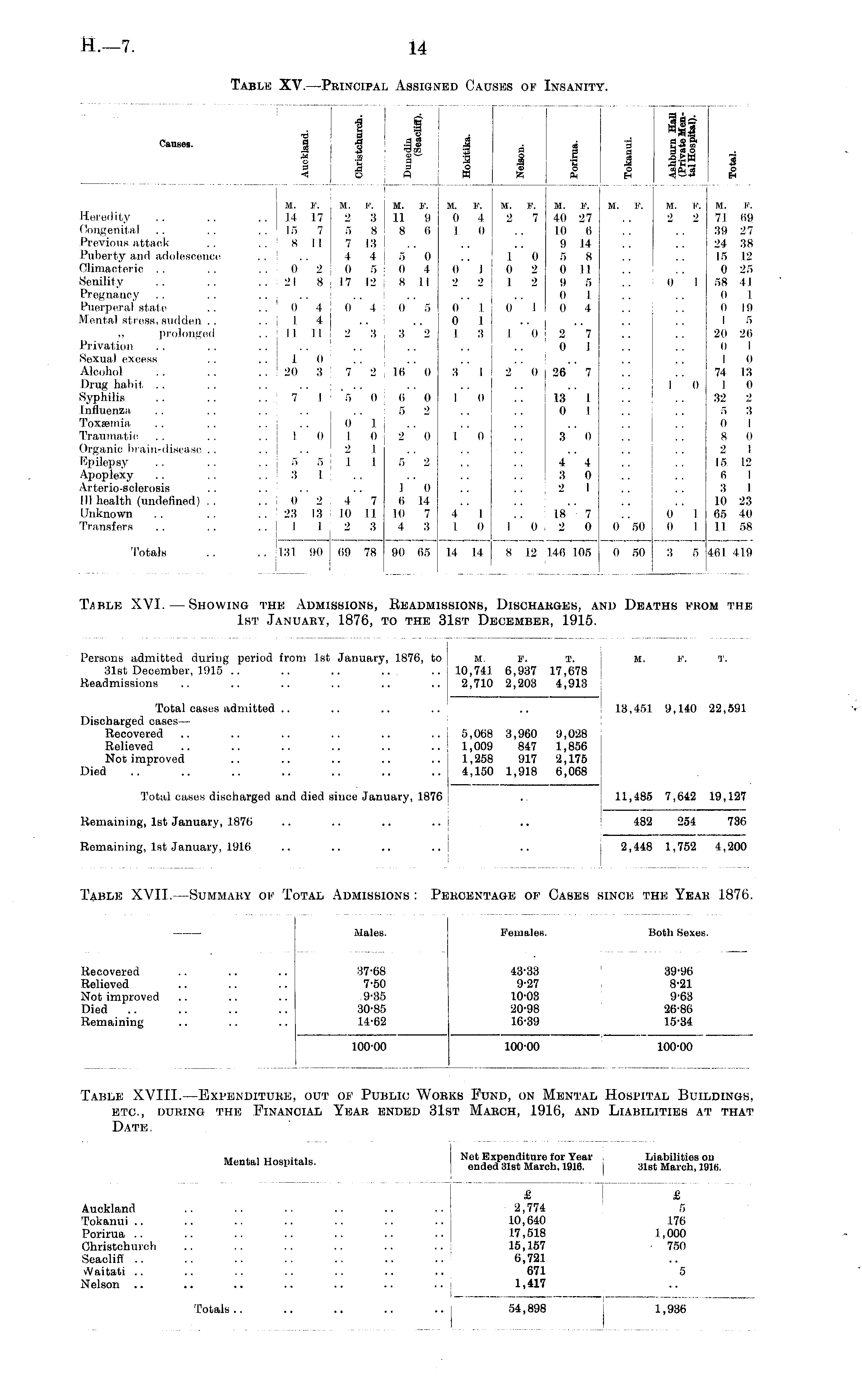Table XVI. —Showing the Admissions, Readmissions, Discharges, and Deaths from the 1st January, 1876, to the 31st December, 1915.