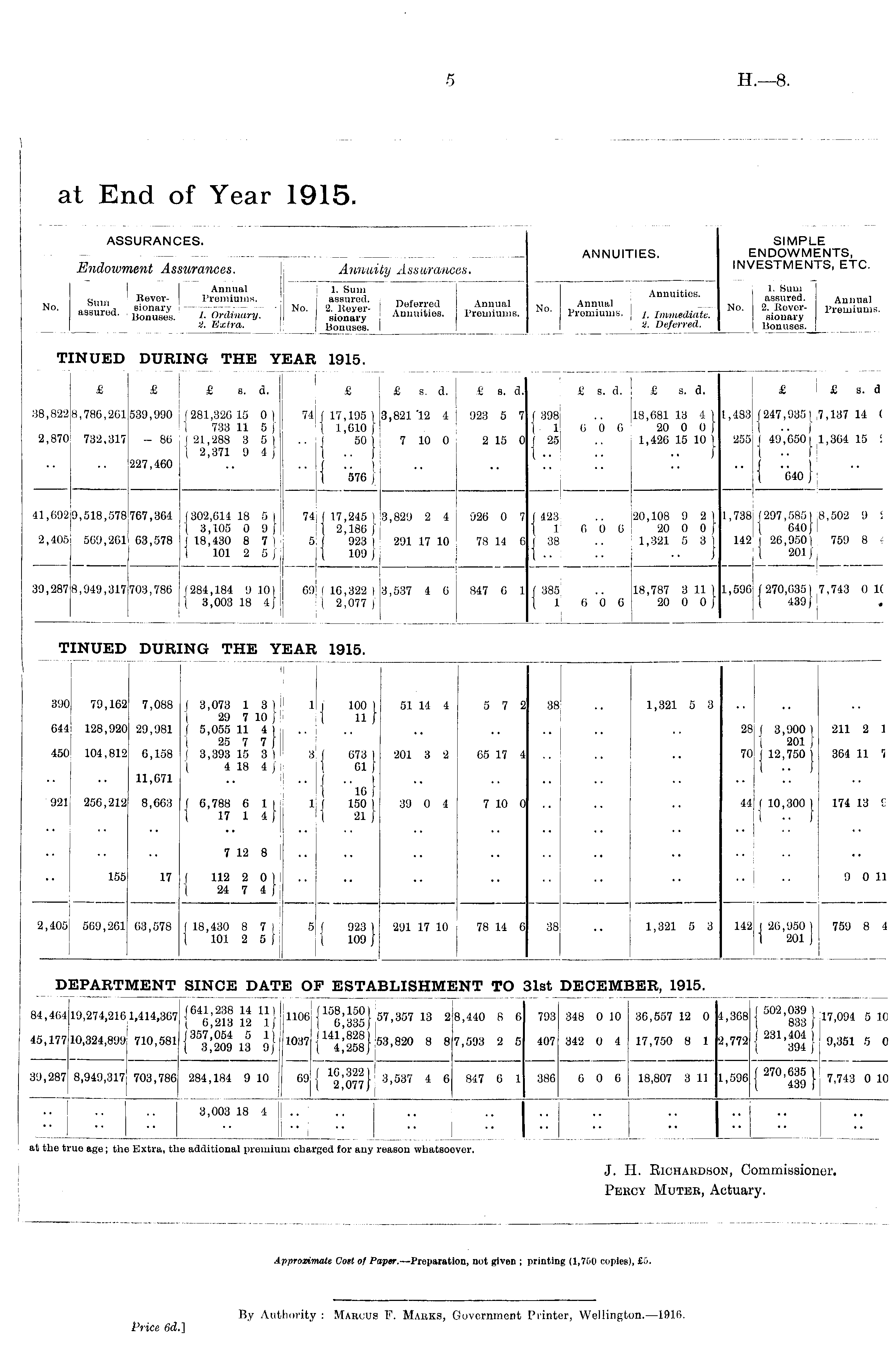 J. H. Bichakdson, Commissioner. Pekcy Muteb, Actuary.