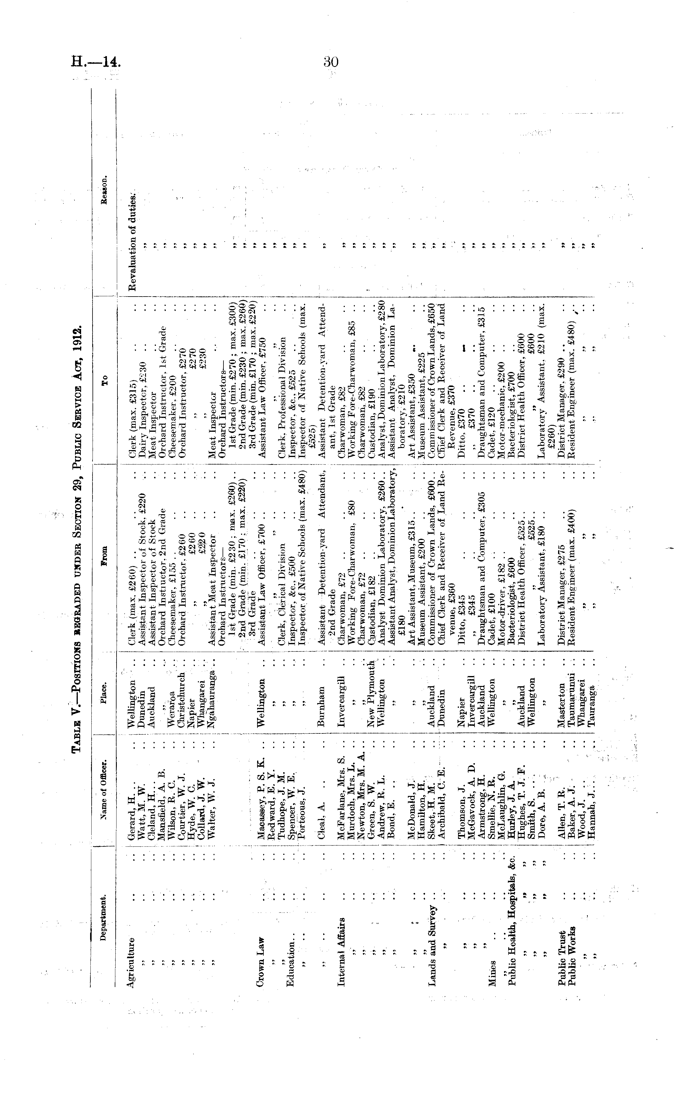 Table V.—Positions regarded under Section 29, Public Service Act, 1912.