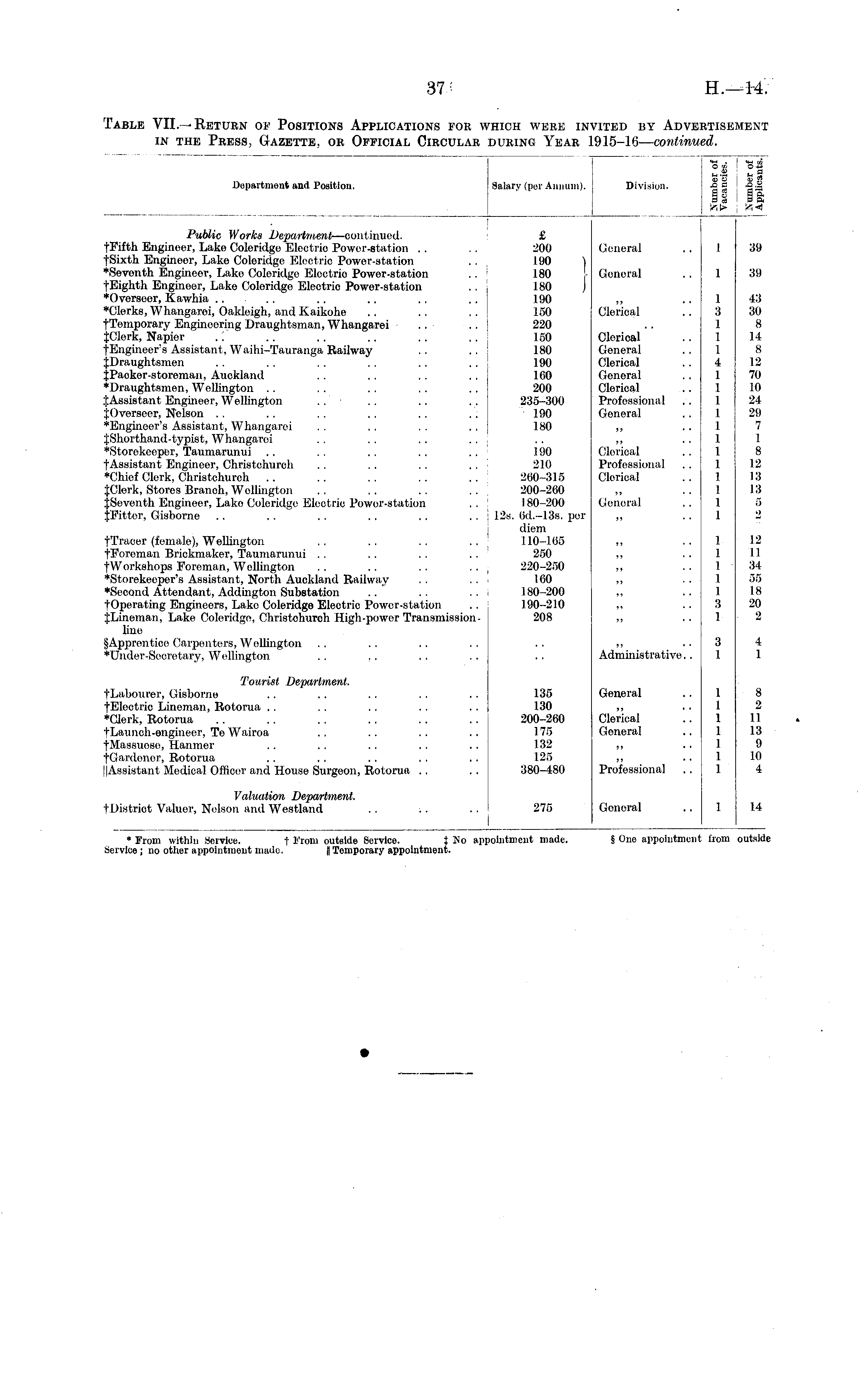 Table VII.—Return of Positions Applications for which were invited by Advertisement in the Press, Gazette, or Official Circular during Year 1915-16— continued.