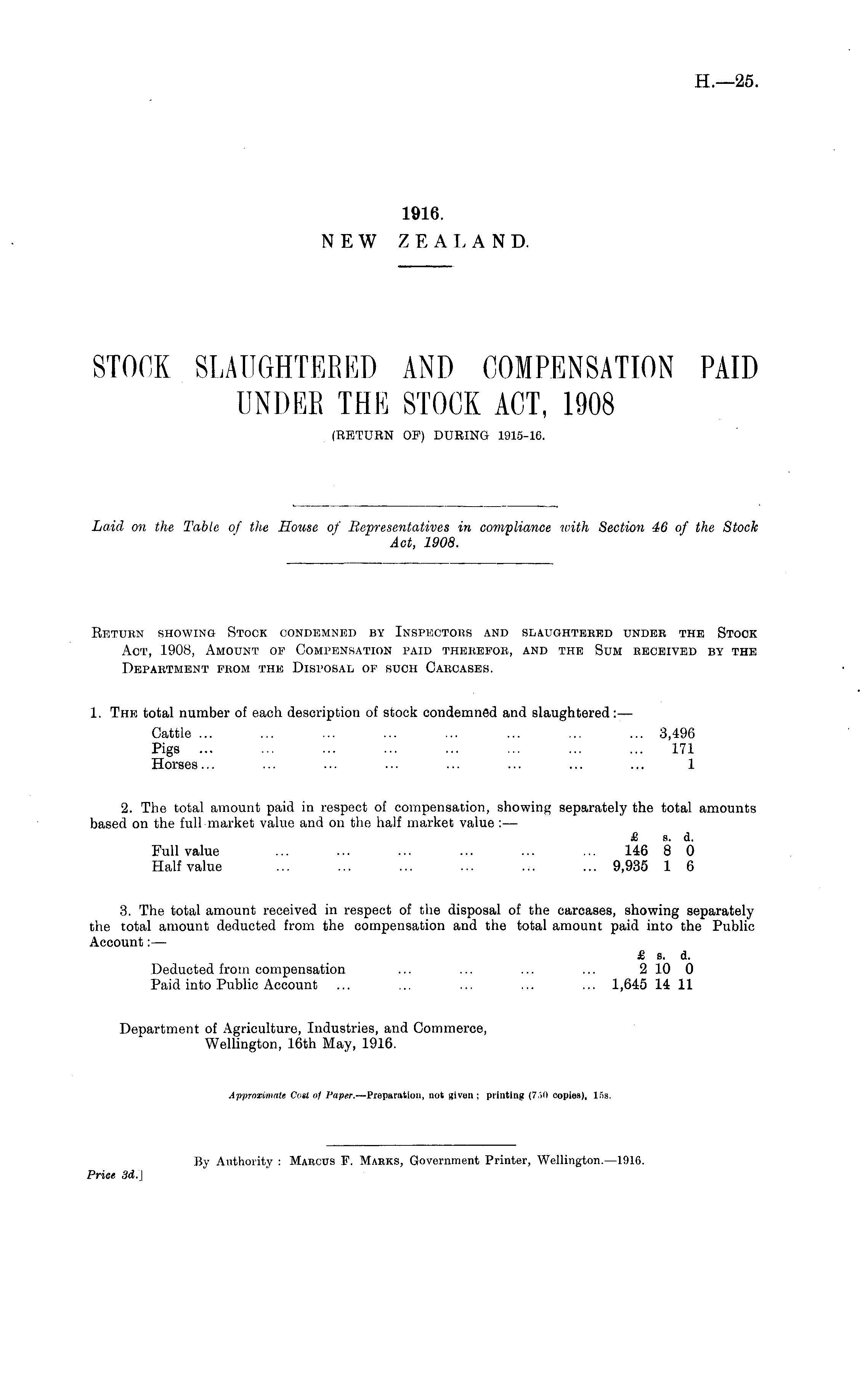 Authority : Marcus F. Marks, Government Printer, Wellington.—l9l6.