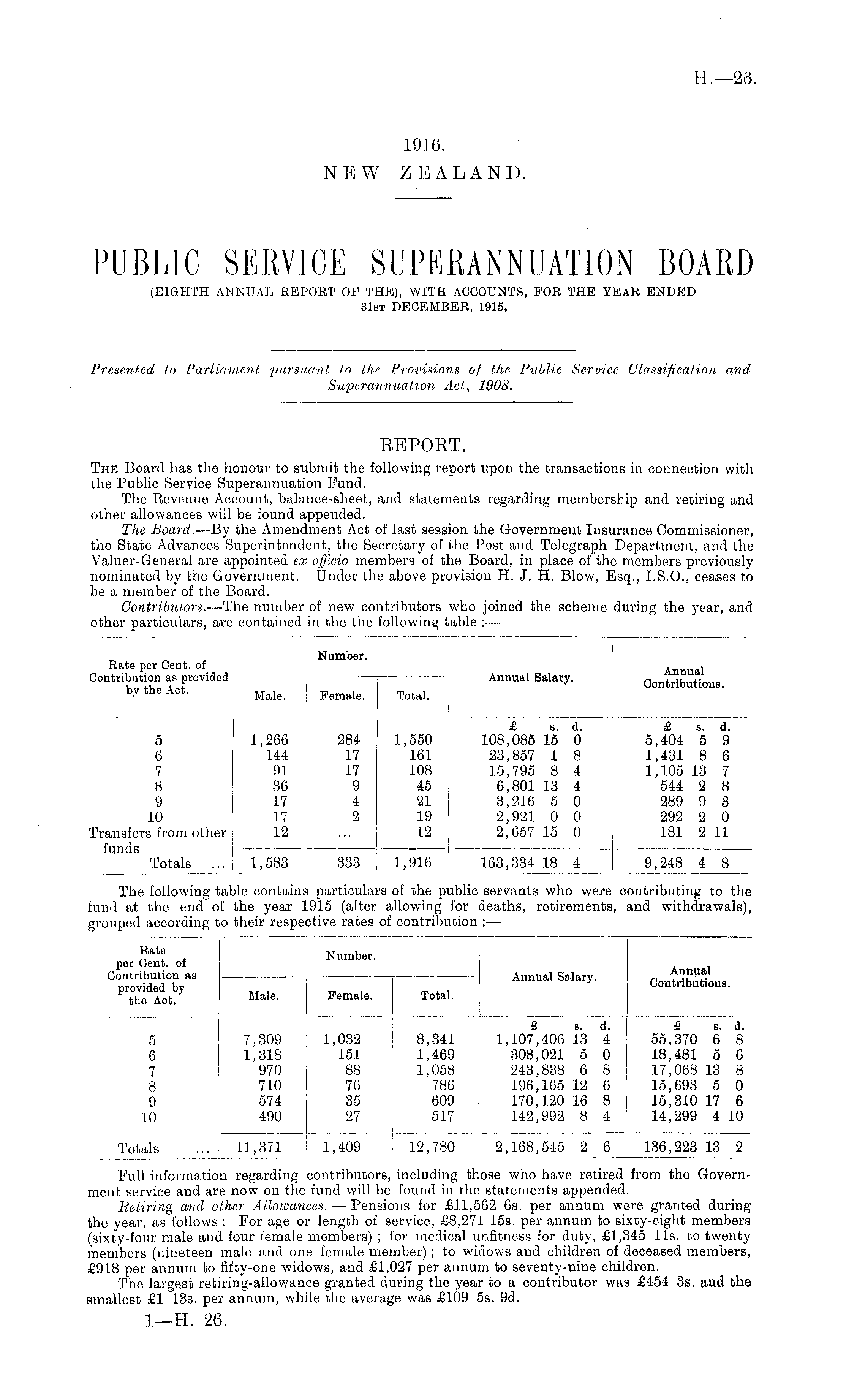 PUBLIC SERVICE SUPERANNUATION BOARD (EIGHTH ANNUAL REPORT OF THE), WITH ACCOUNTS, FOR THE YEAR ENDED 31st DECEMBER, 1915.