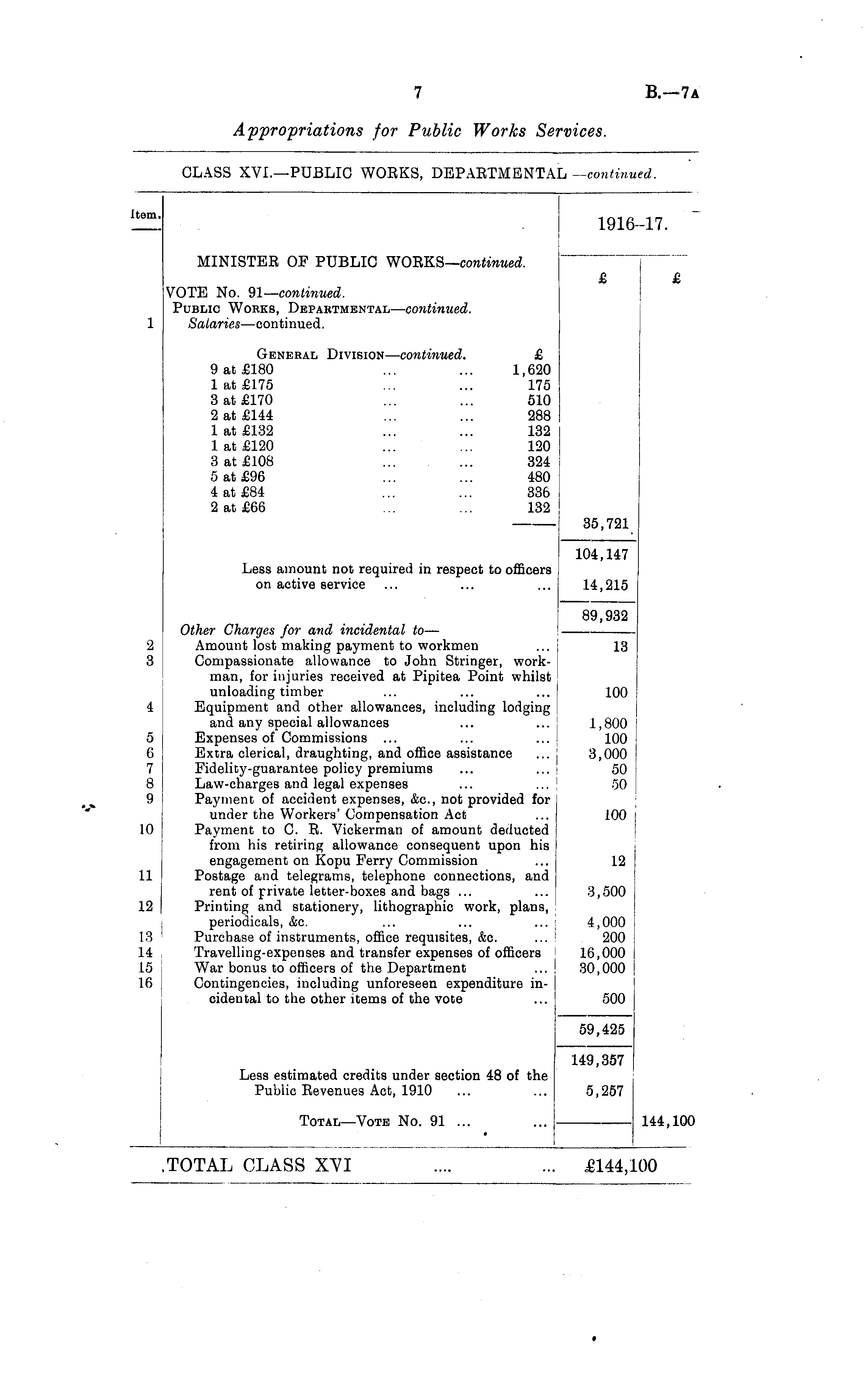 CLASS XVI.—PUBLIC WORKS, DEPARTMENTAL —continued.