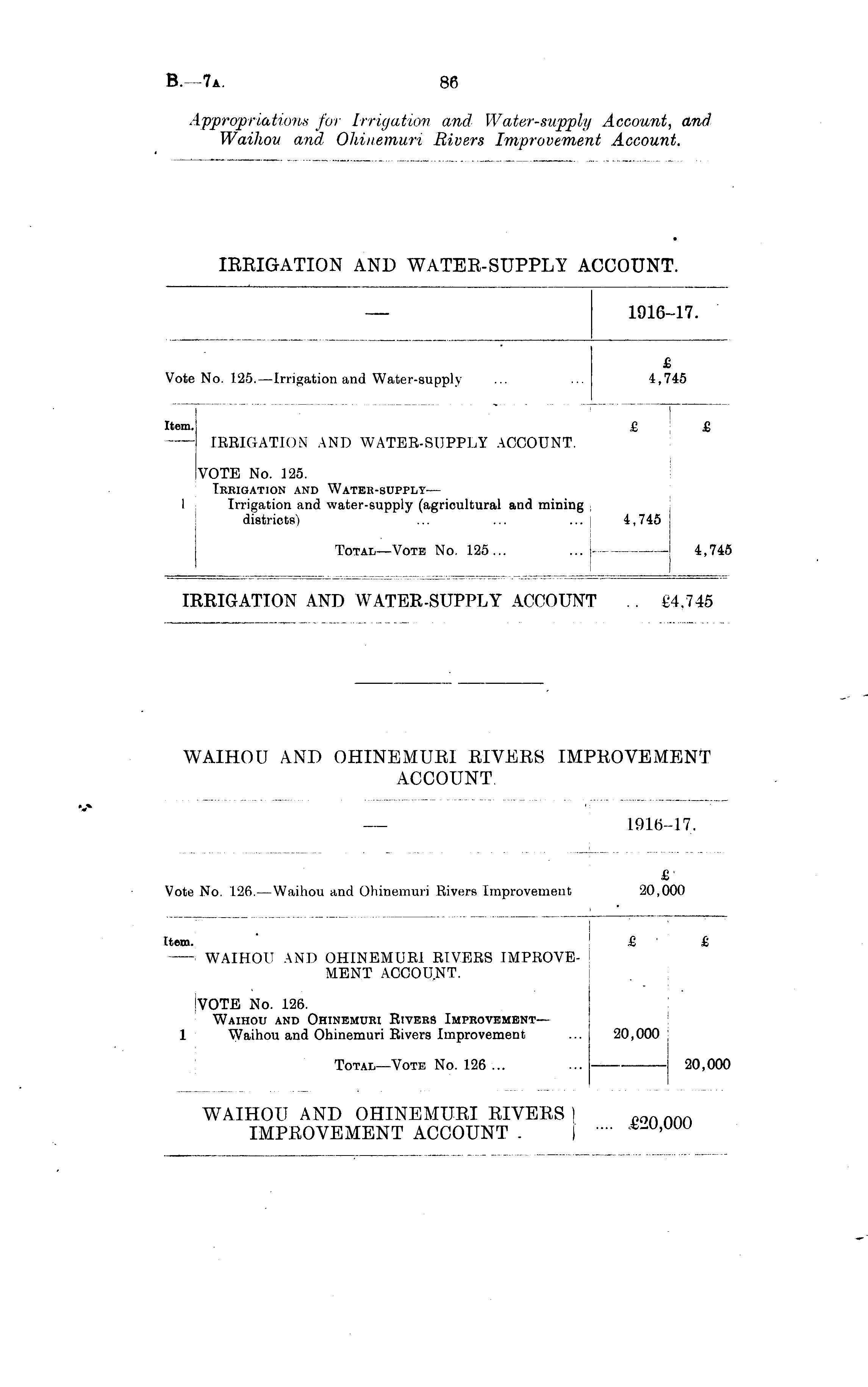 Appropriations for Irrigation and Water-supply Account, and Waihou and Ohinemuri Rivers Improvement Account.