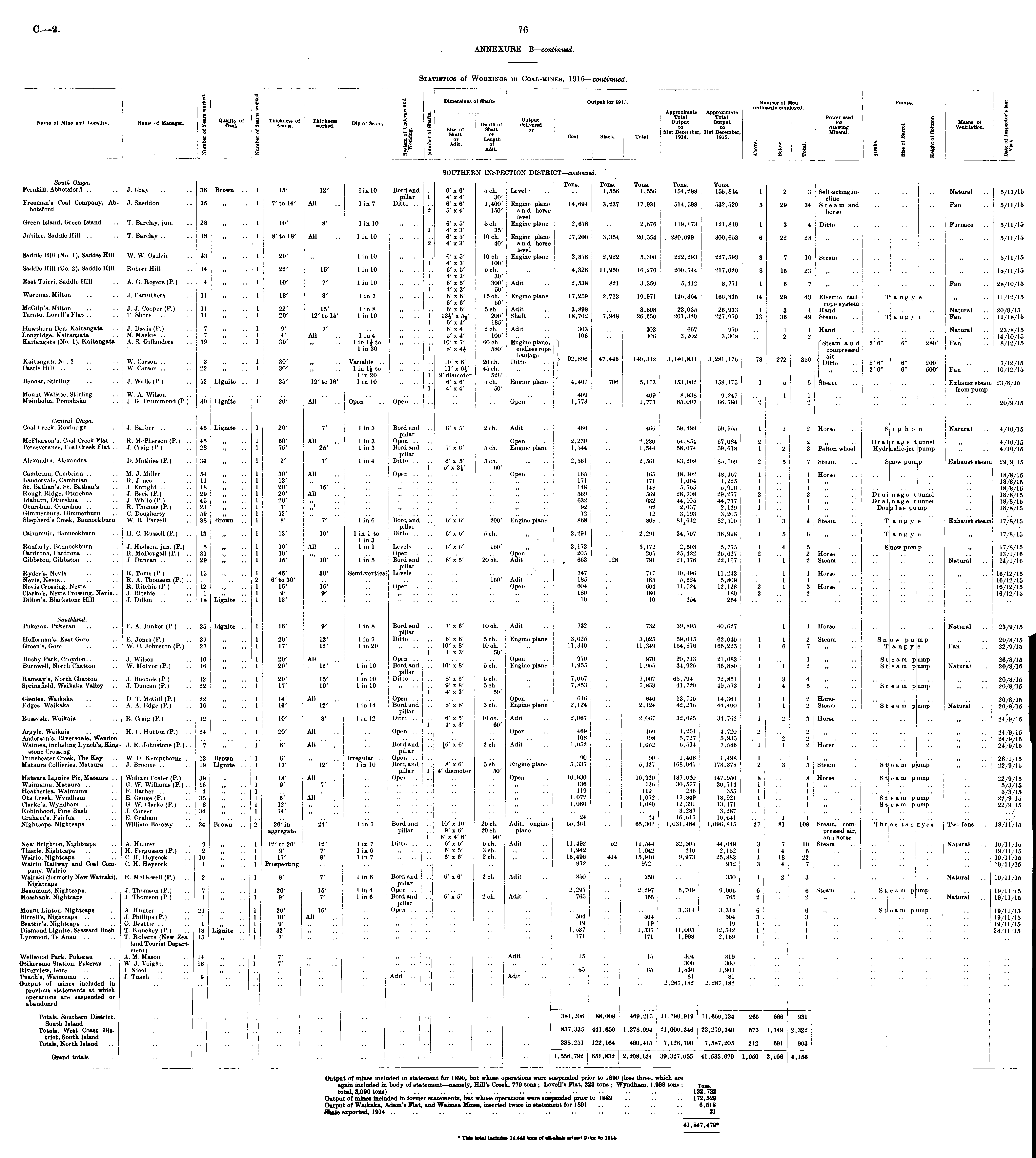 Statistics of Workings in Coal-mines, 1915 —continued.