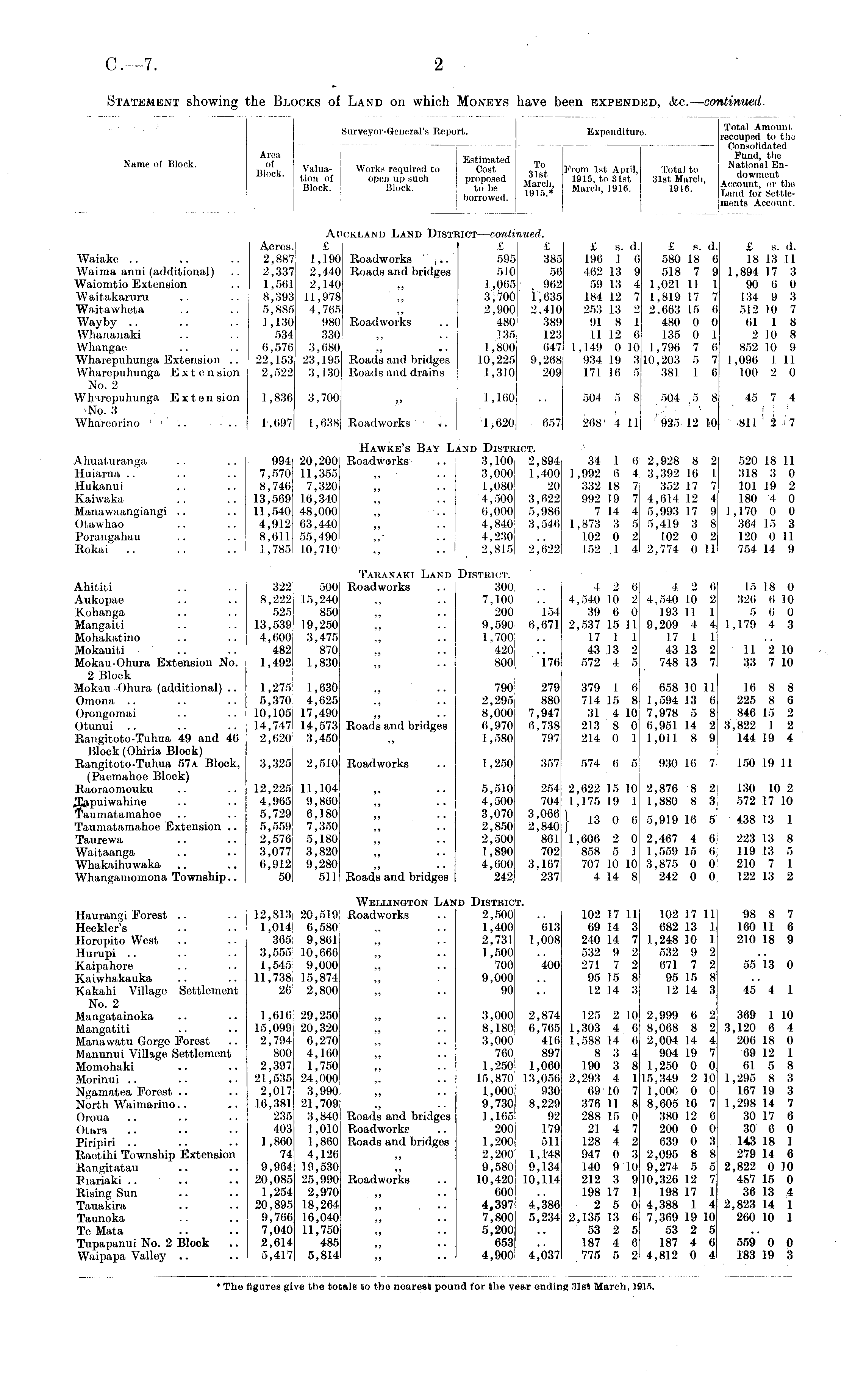 Statement showing the Blocks of Land on which Moneys have been expended, &c.— continued.