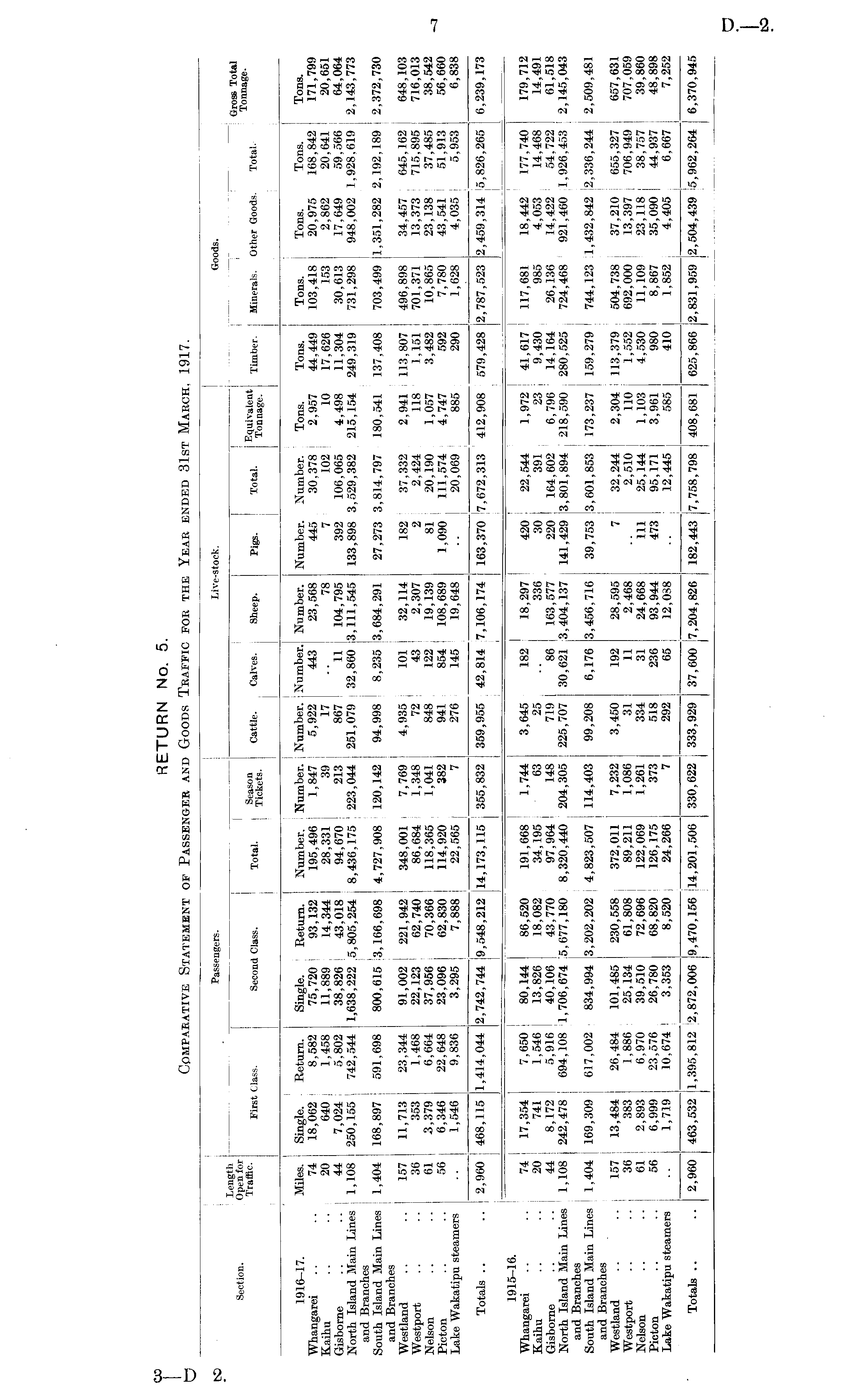 RETURN No. 5. Comparative Statement of Passenger and Goods Traffic for the Year ended 31st March, 1917.