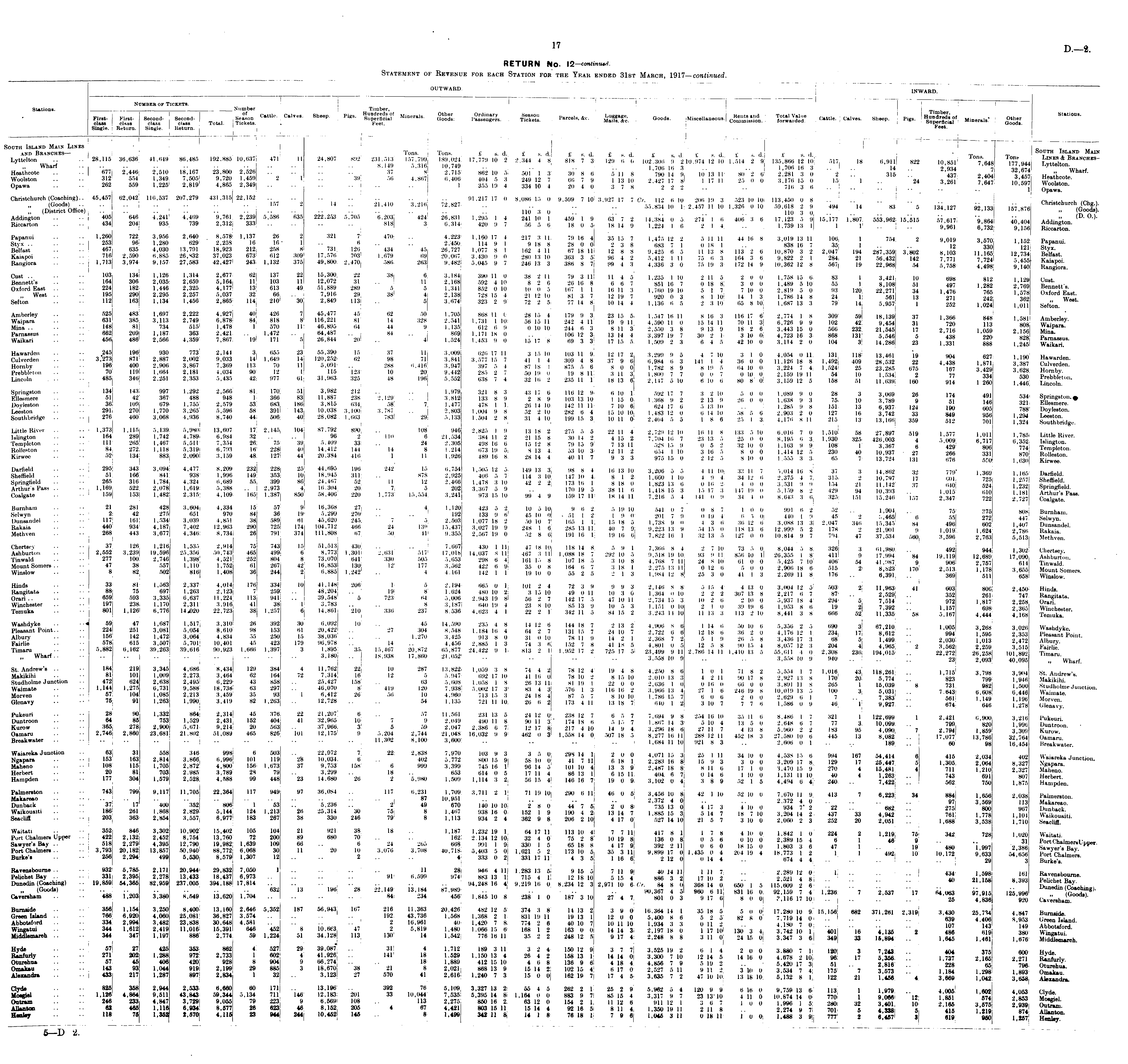 RETURN No. 12 —continued. Statement of Revenue for each Station for the Year ended 31st March, 1917—continued.