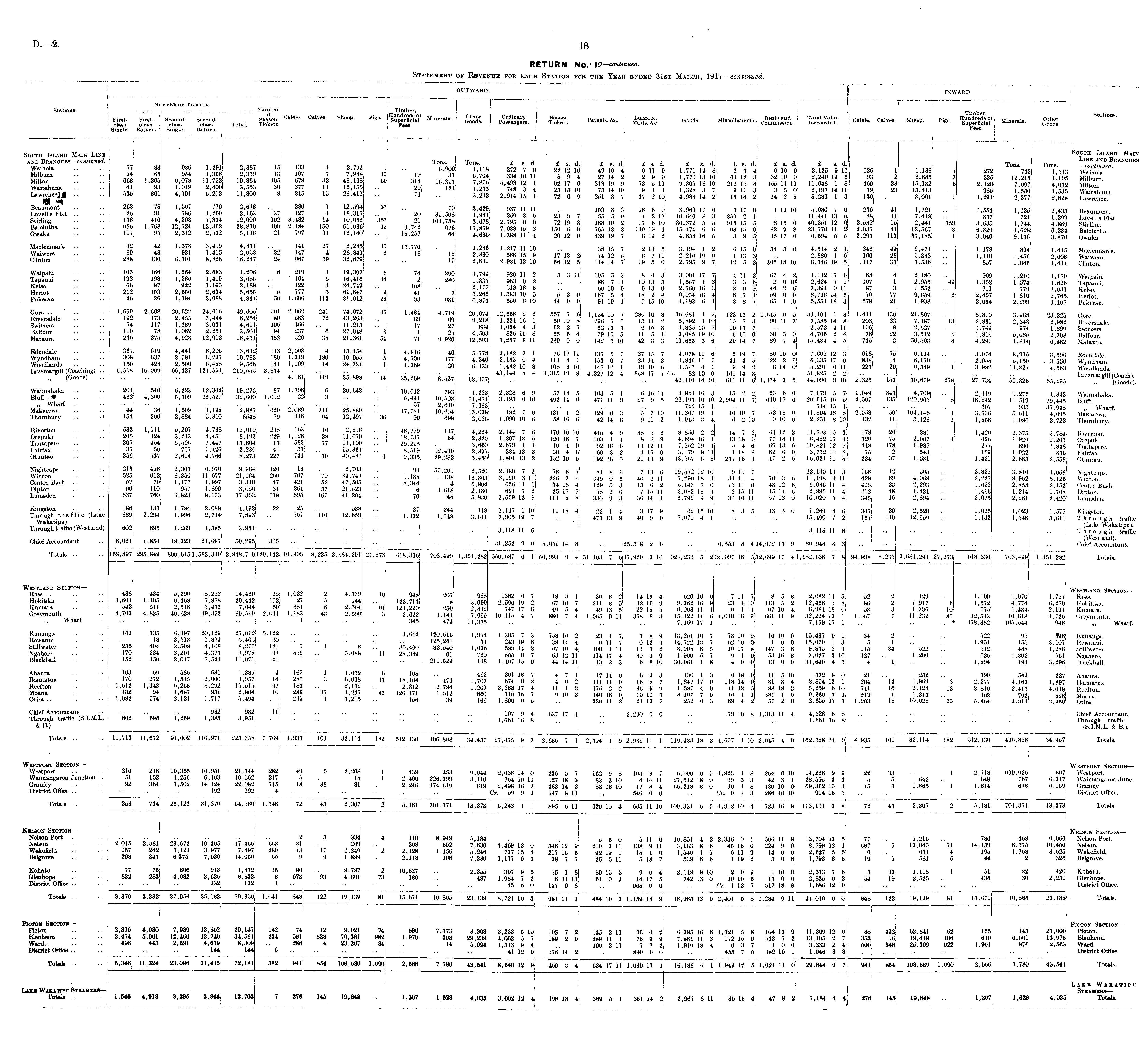 RETURN No. 12 —continued. Statement of Revenue for each Station for the Year ended 31st March, 1917—continued.