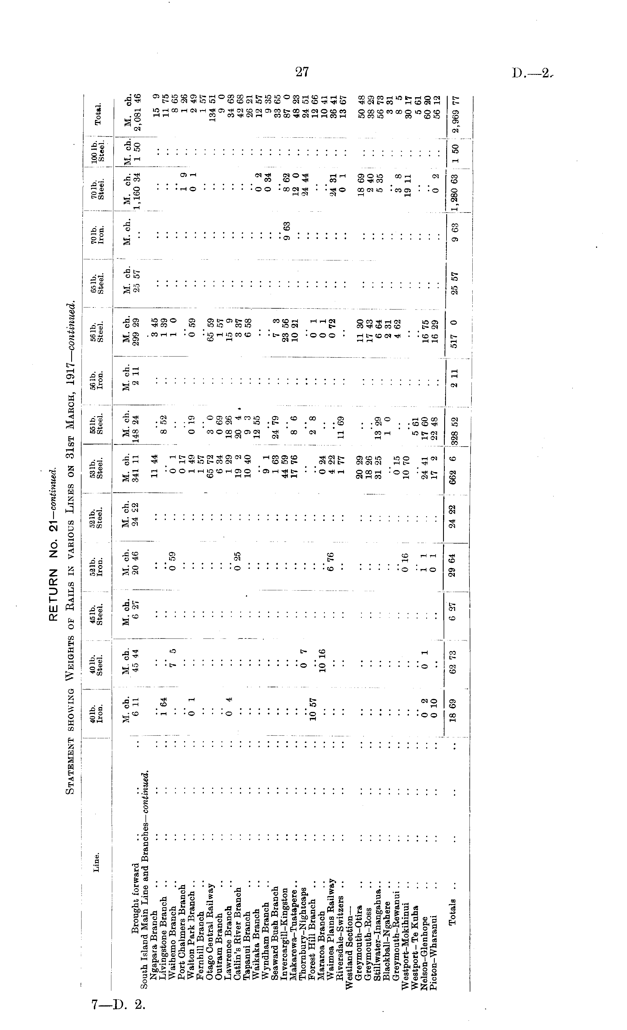 RETURN No. 21— continued. Statement showing Weights of Rails in various Lines on 31st March, 1917— continued.