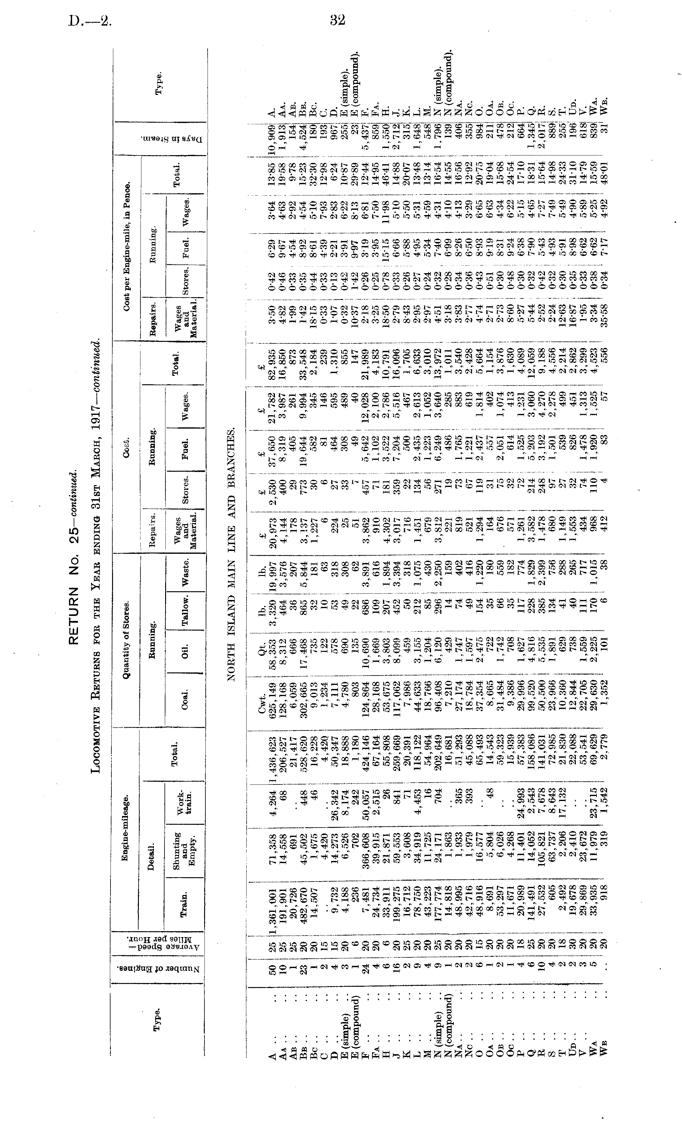 RETURN No. 25- continued. Locomotive Returns for the Year ending 31st March, 1917— continued.