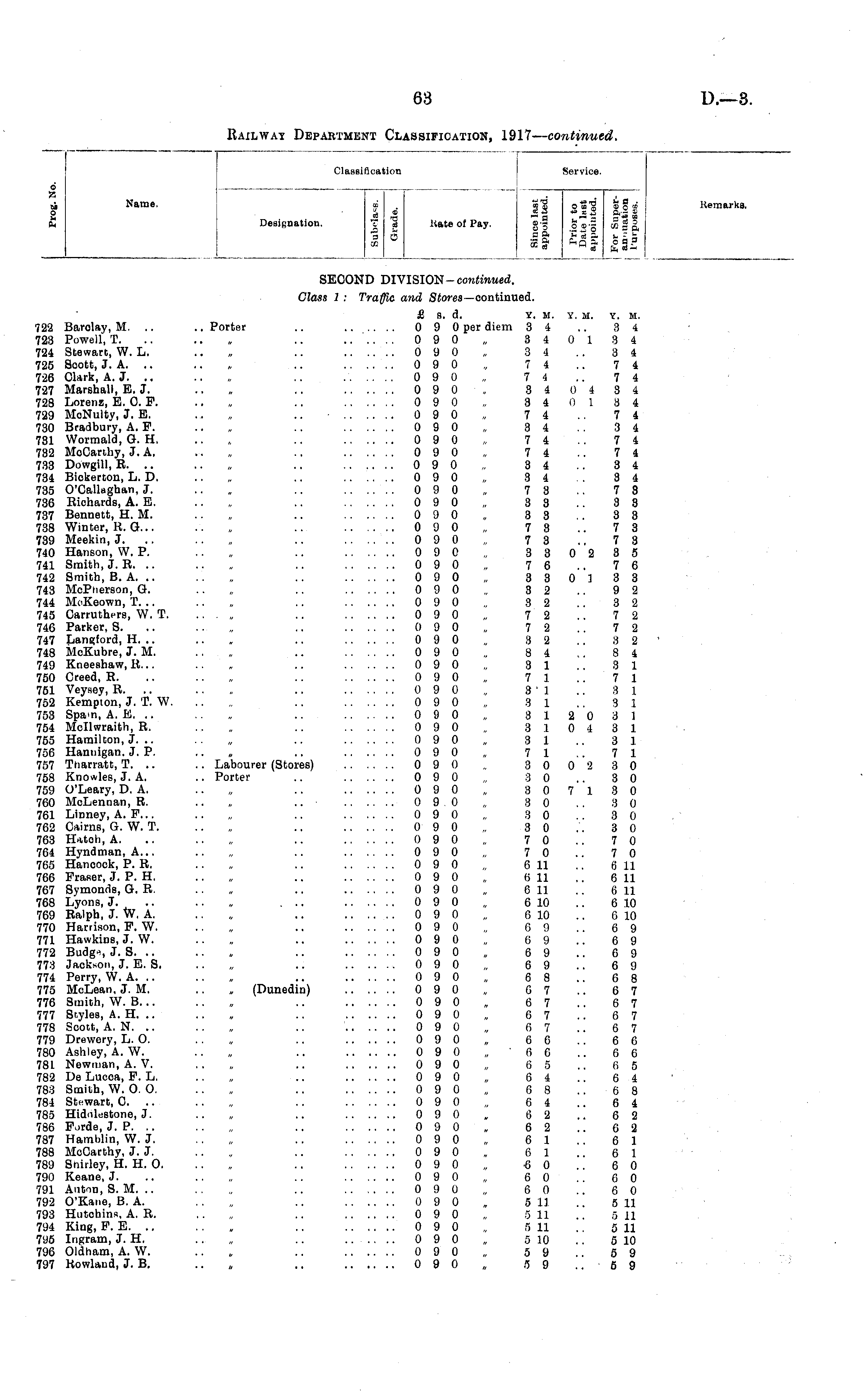Railway Department Classification, 1917— continued.