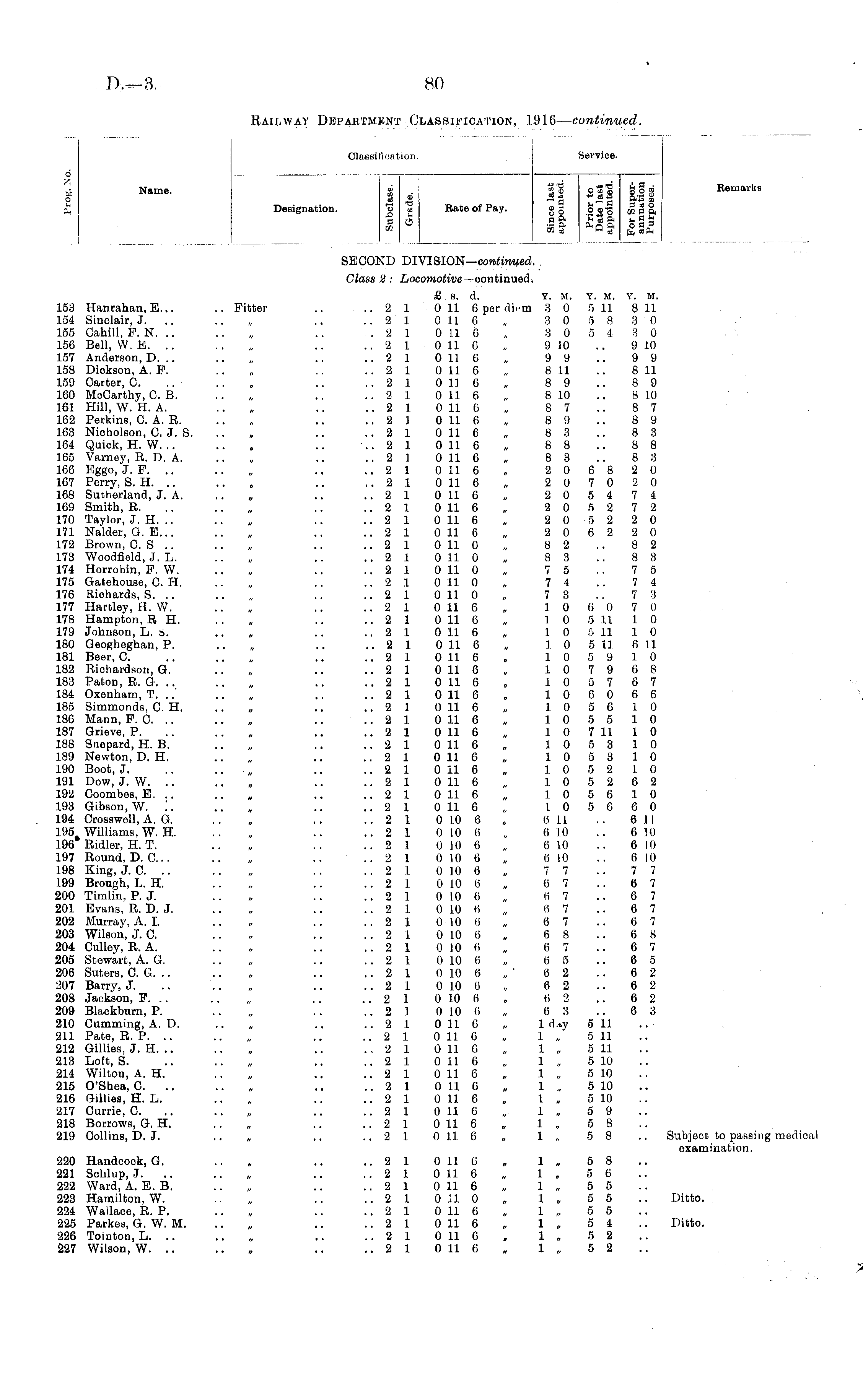 Railway Department Classification, 1916-continued.