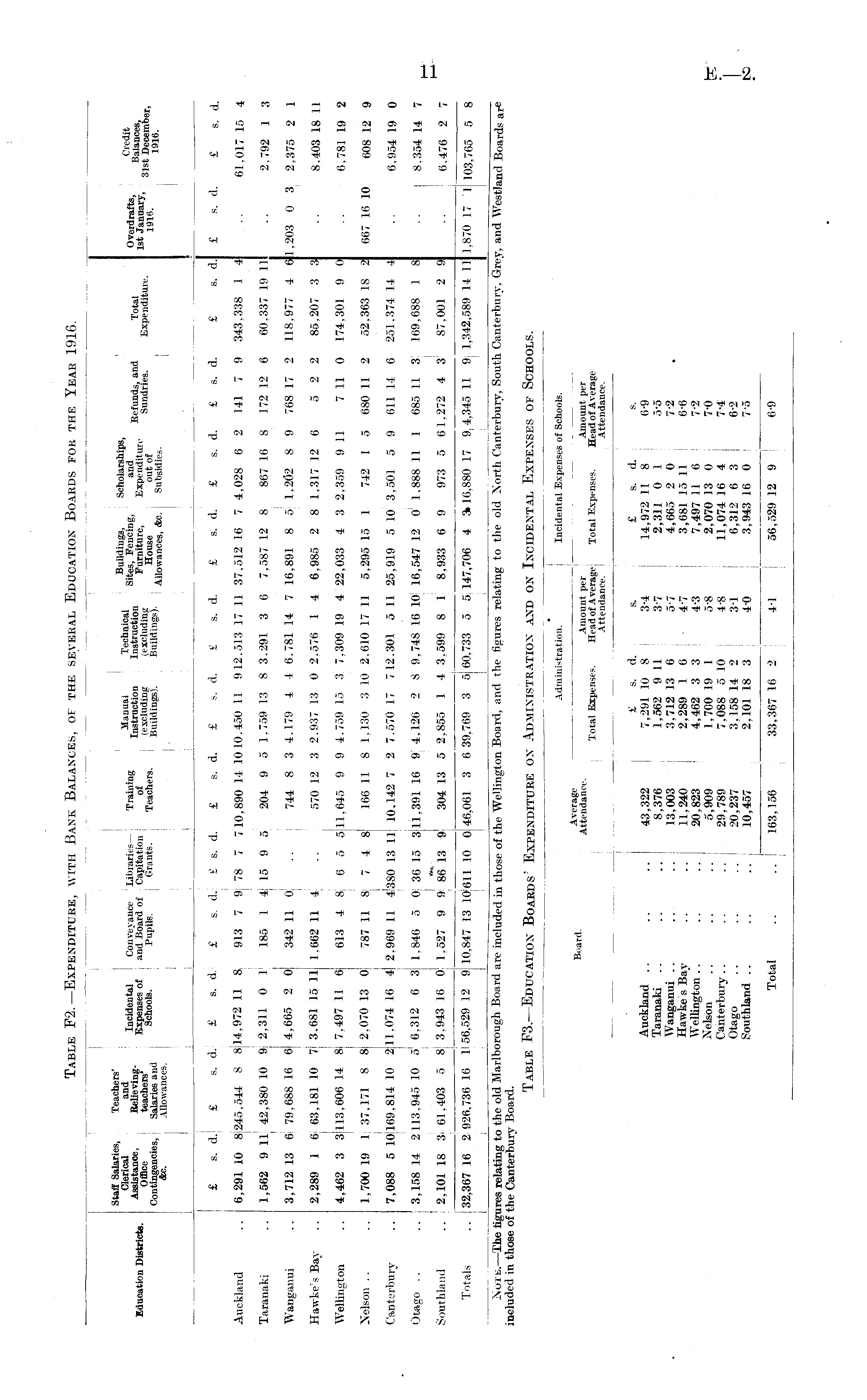 Table F2.—Expenditure, with Bank Balances, of the several Education Boards for the Year 1916.