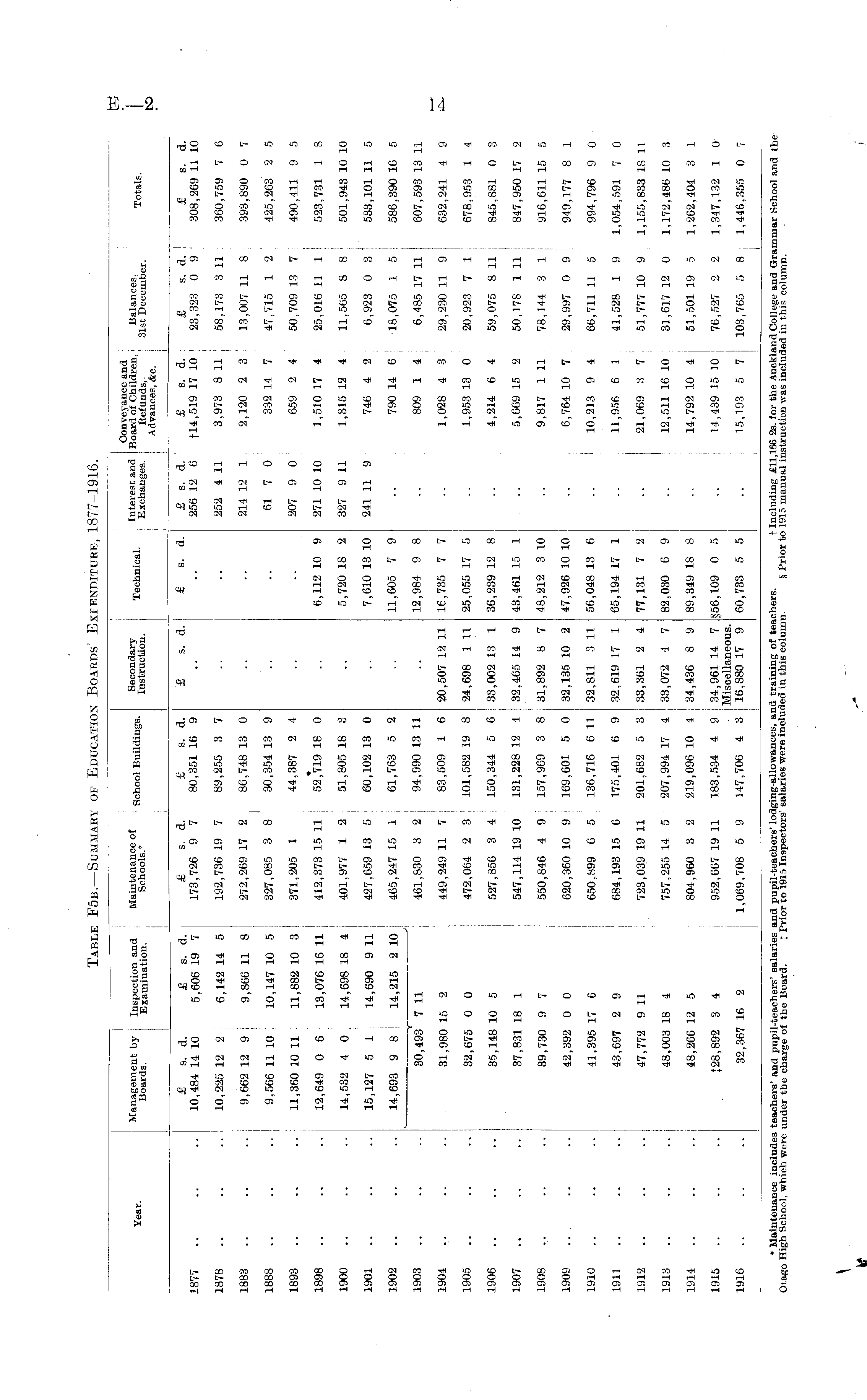 Table F5b.—Summary of Education Boards' Expenditure, 1877-1916.