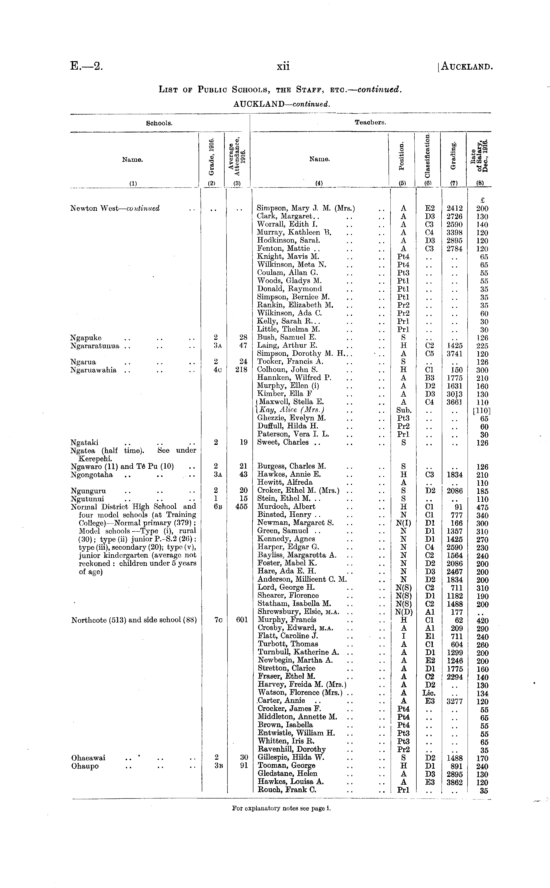 List of Public Schools, the Staff, etc. — continued. AUCKLAND— continued.