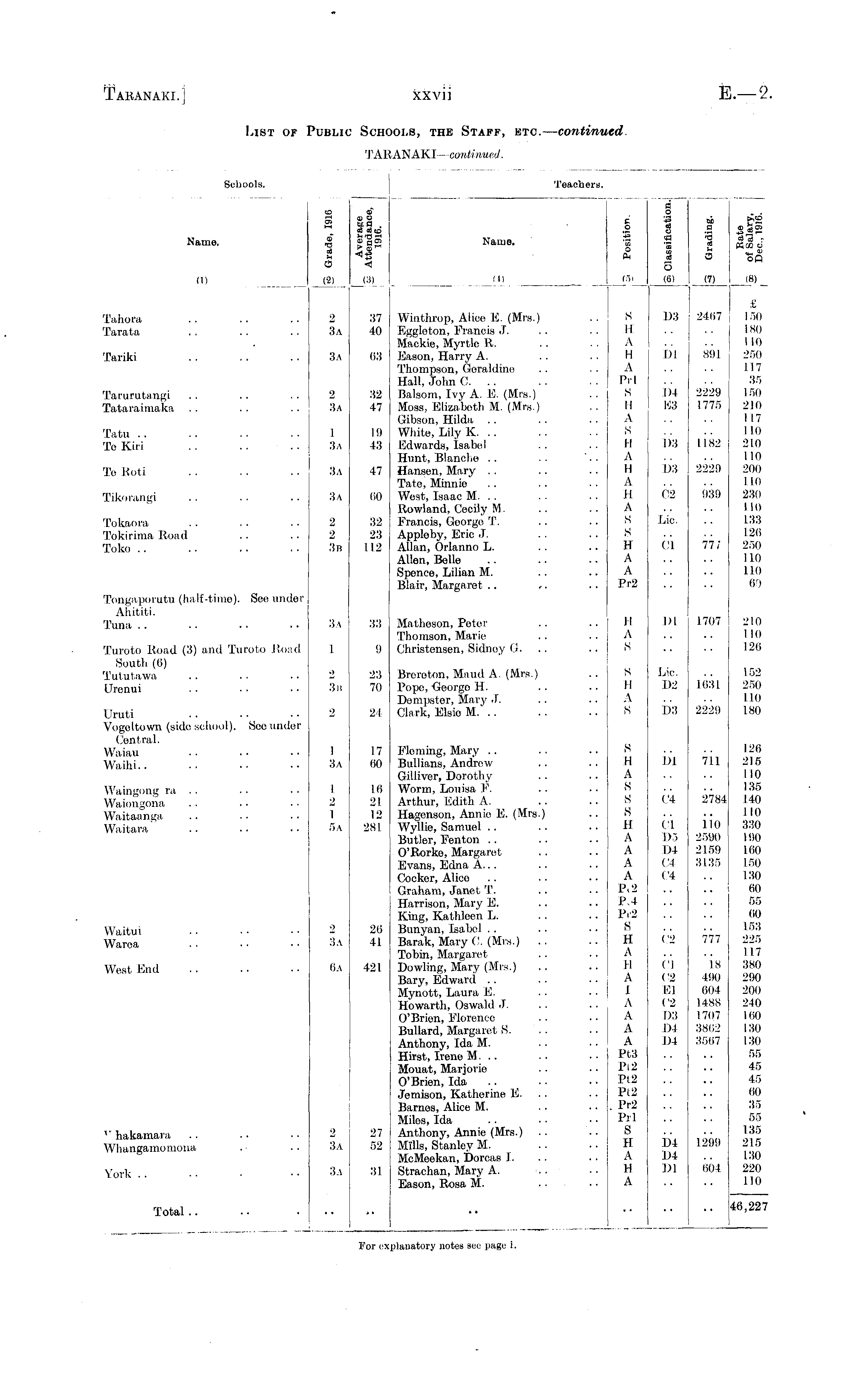 List of Public Schools, the Staff, etc. — continued. TARANAKI— continued.