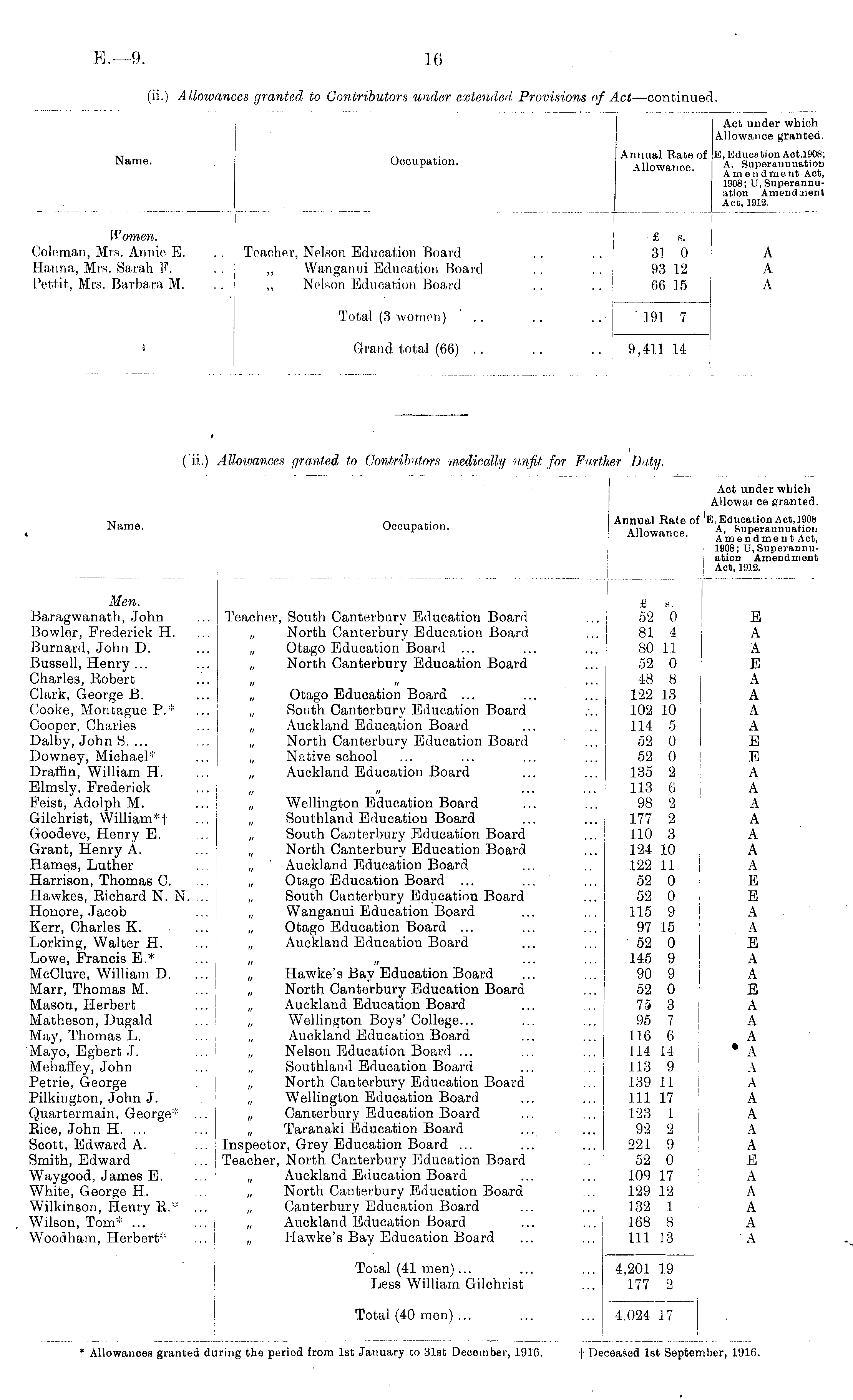 (ii.) Allowances granted to Contributors under extended Provisions of Act —continued.